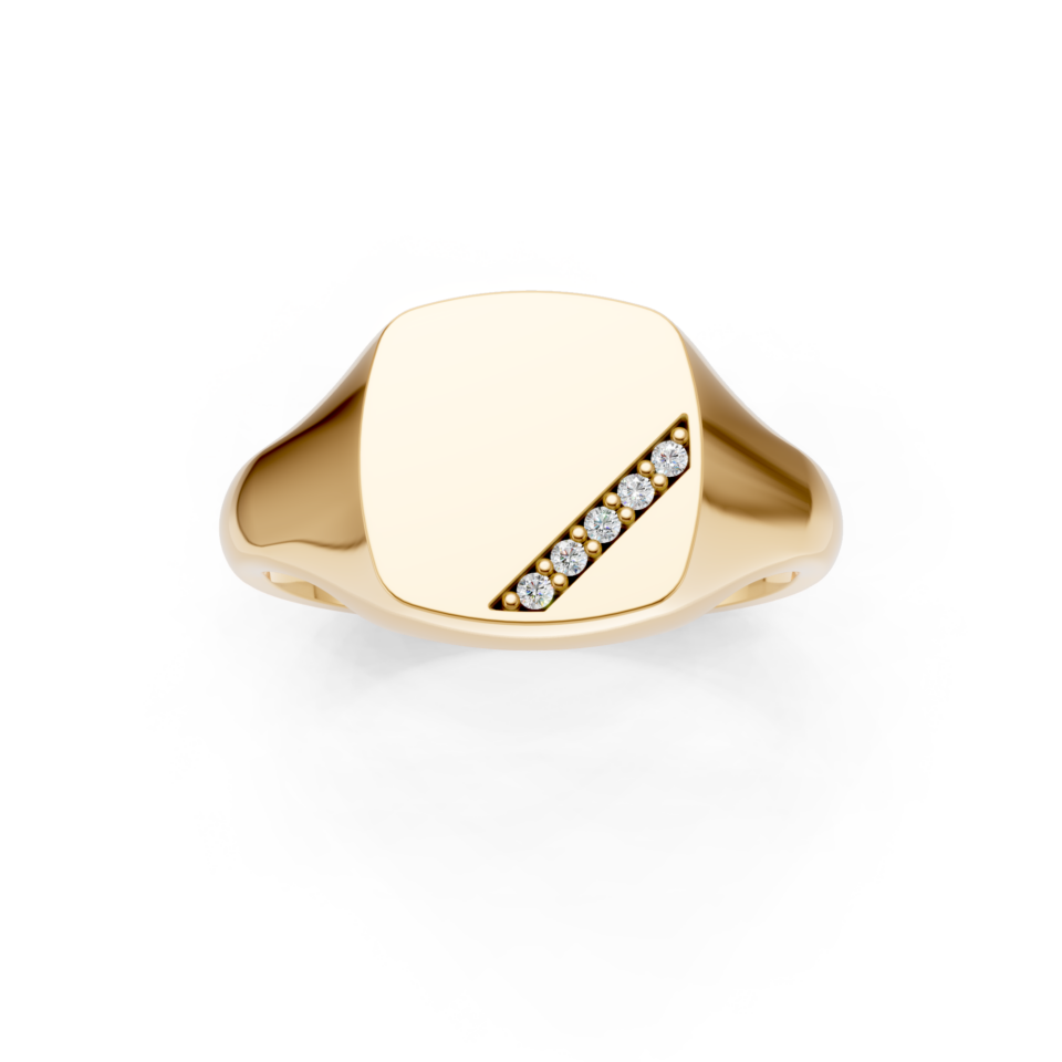 Cushion Shaped Diamond Set Diagonal Channel Signet Ring.