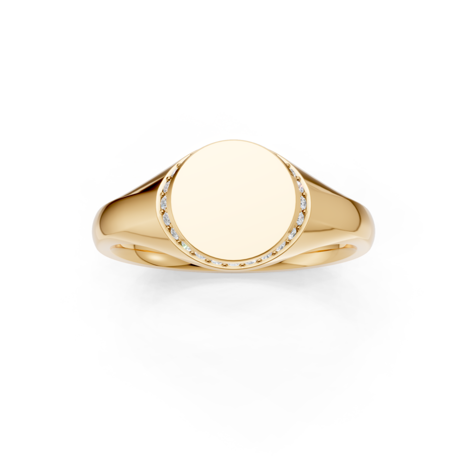 Round Shaped Diamond Set Bezel Signet Ring