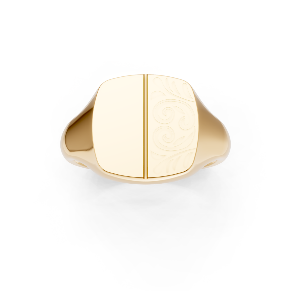 Cushion Shaped 2/3 Engraved Signet Ring