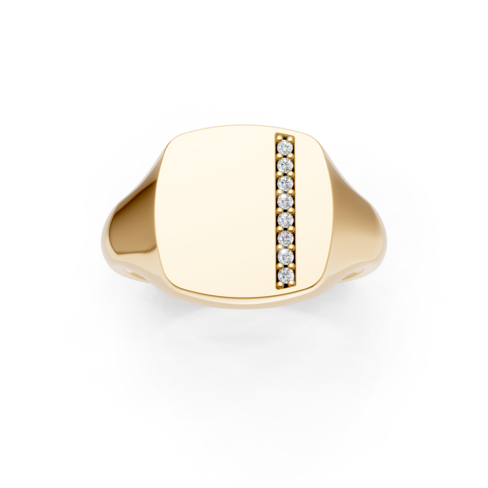 Cushion Shaped Diamond Set Vertical Channel Signet Ring