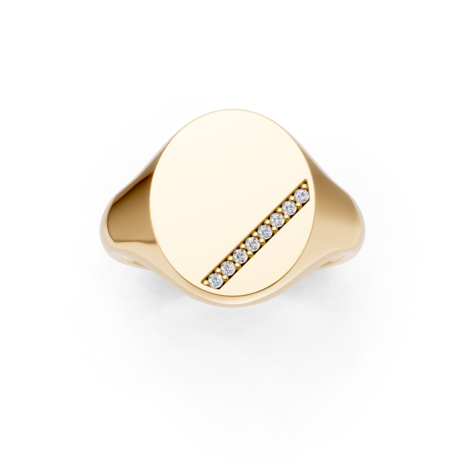 Oval Shaped Diamond Set Diagonal Channel Signet Ring