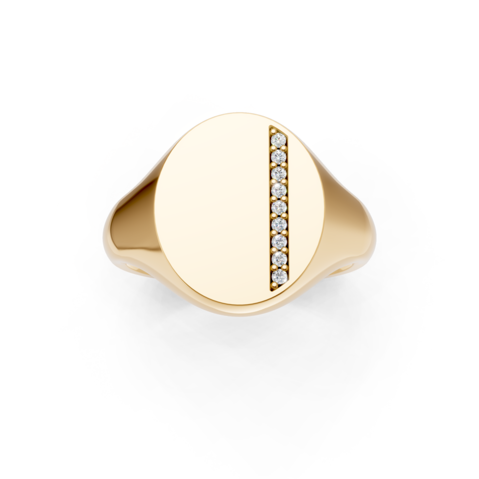 Oval Shaped Diamond Set Vertical Channel Signet Ring