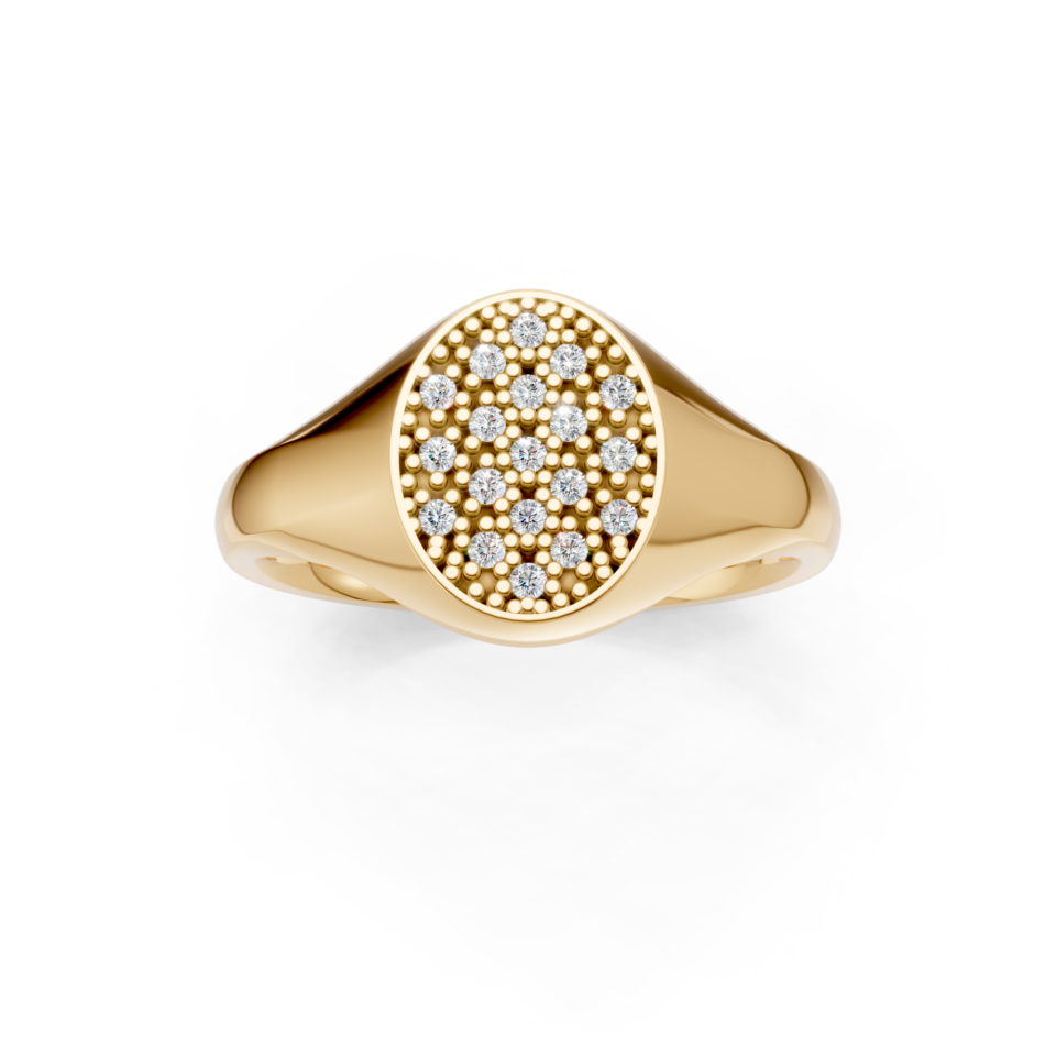 Oval Shaped Diamond Set Pave Signet Ring