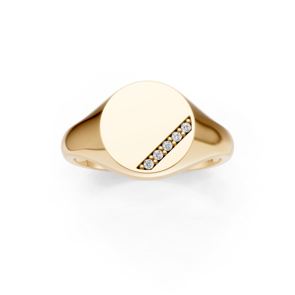 Round Shaped Diamond Set Diagonal Channel Signet Ring