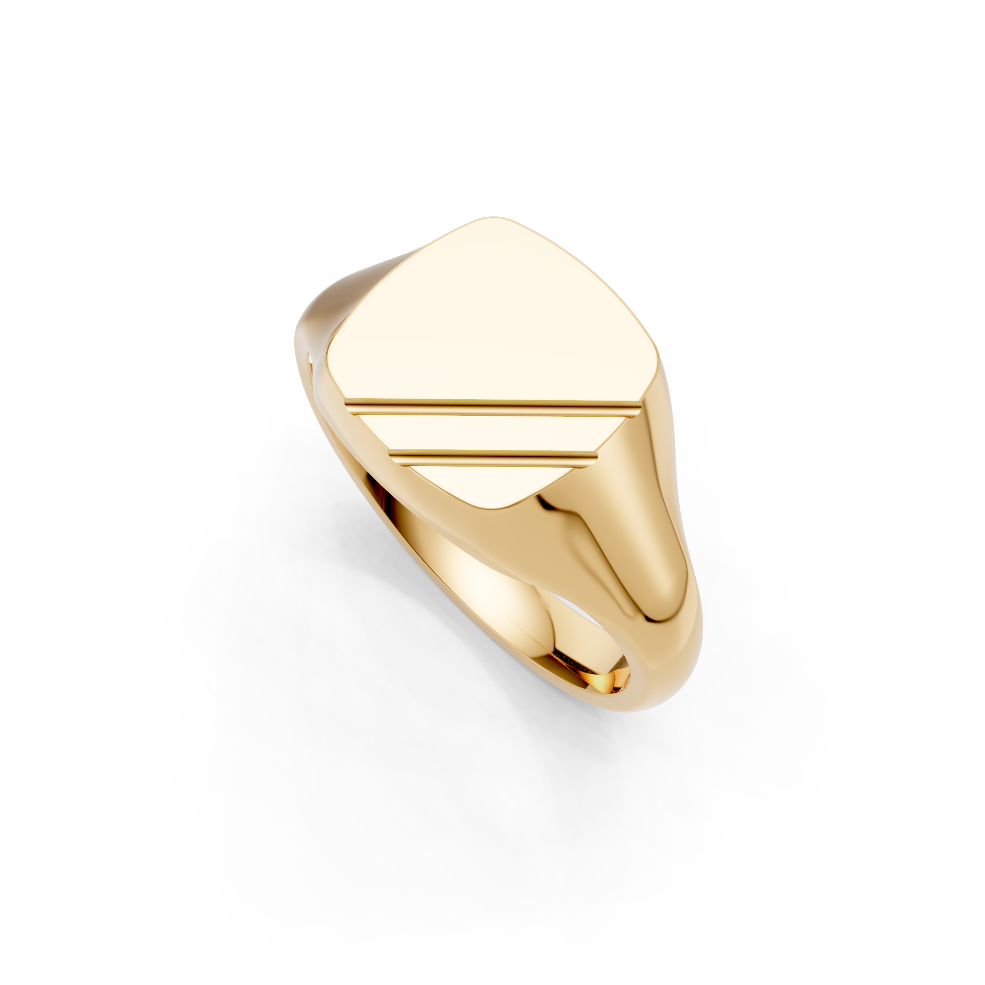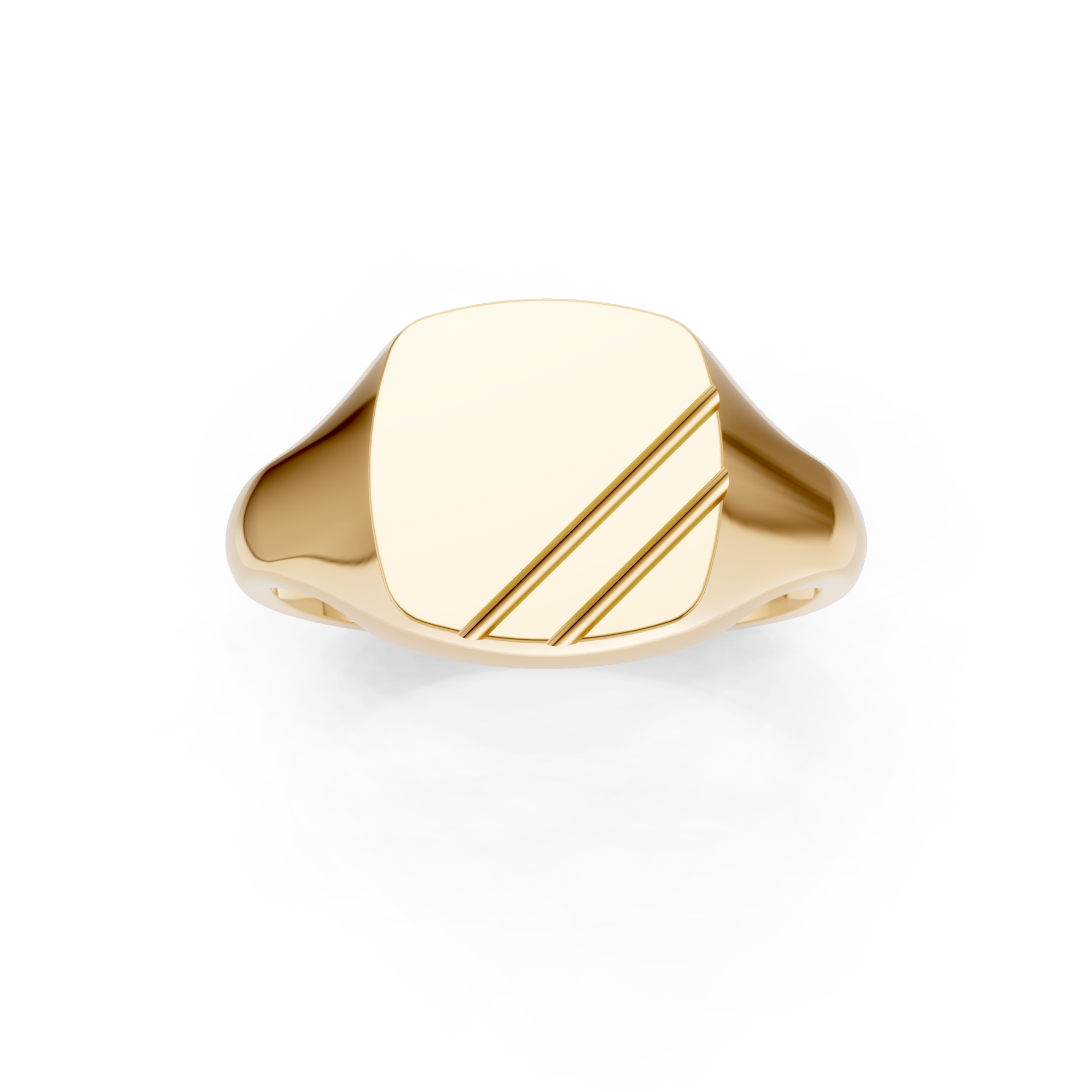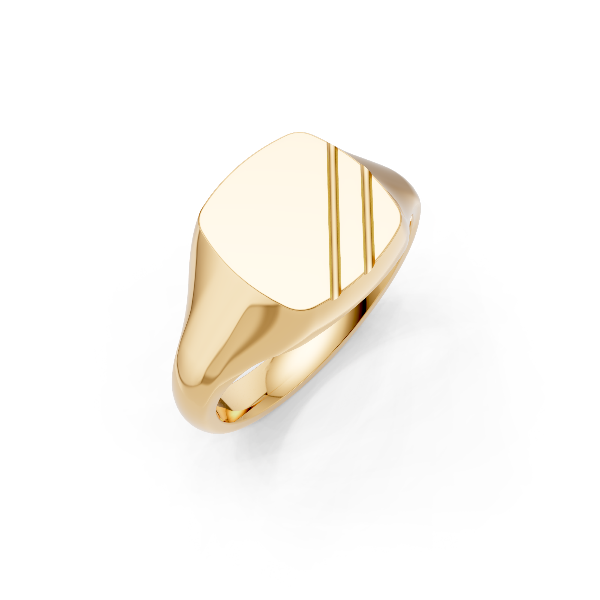 Cushion Shaped Angled Grooves Signet Ring.