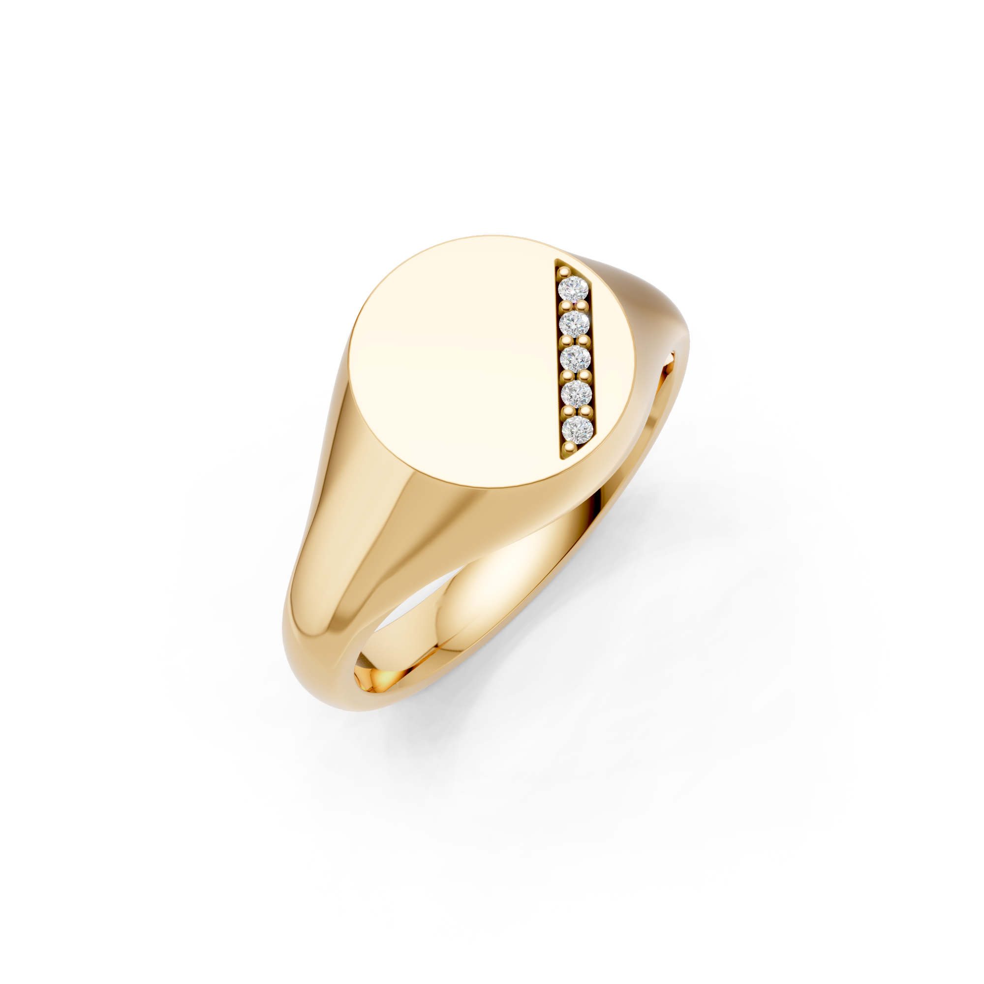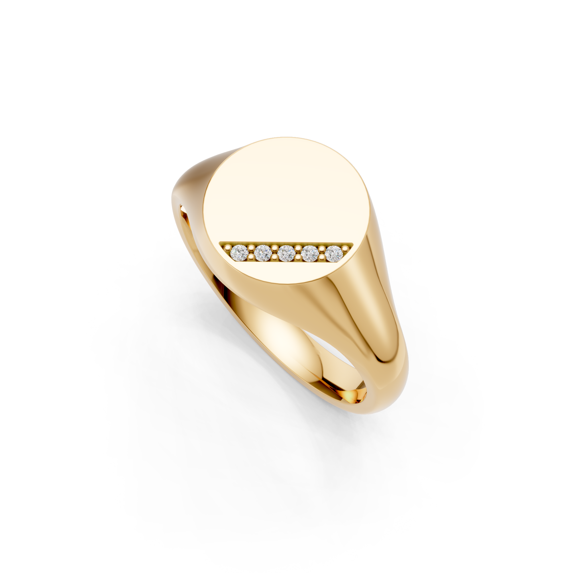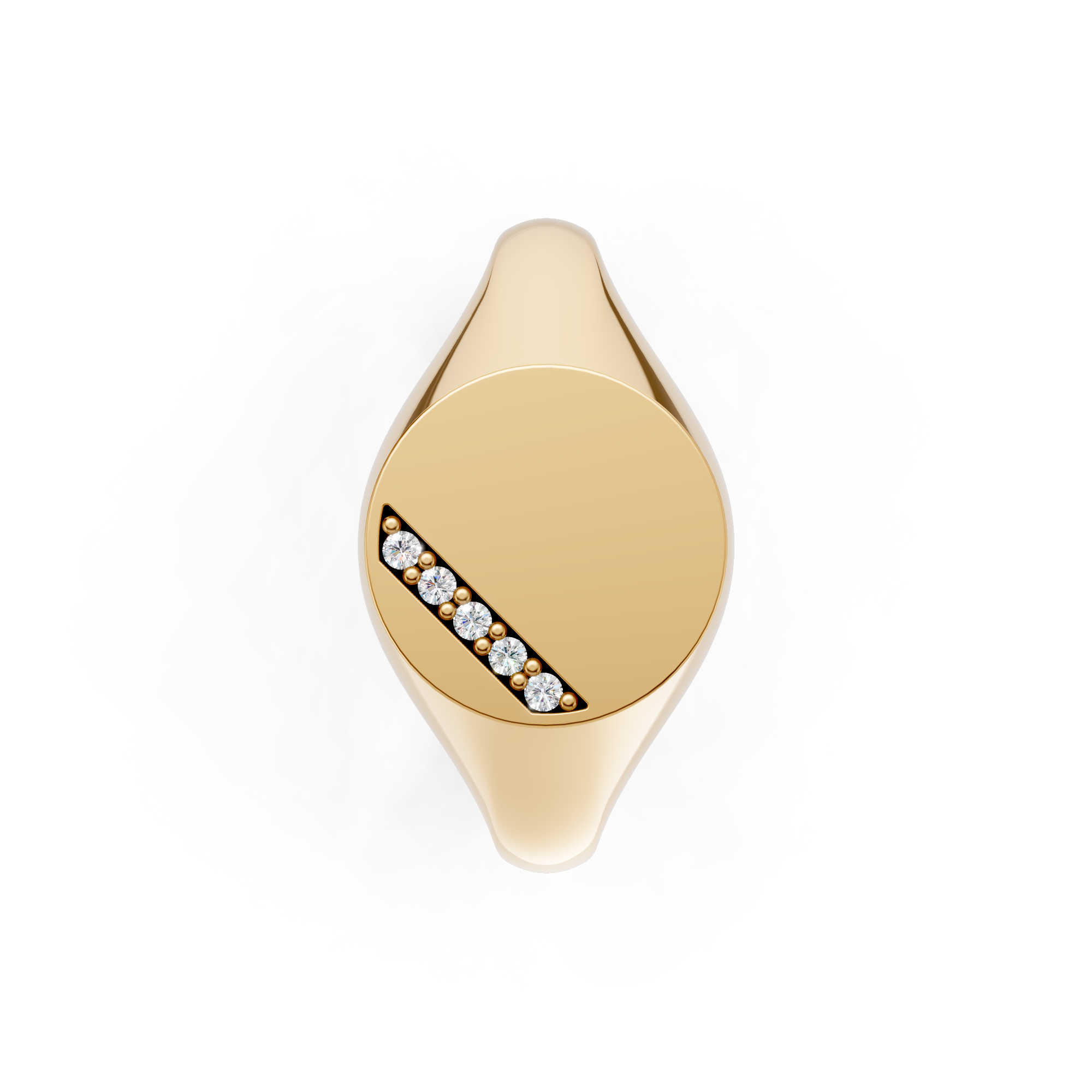 Round Shaped Diamond Set Diagonal Channel Signet Ring