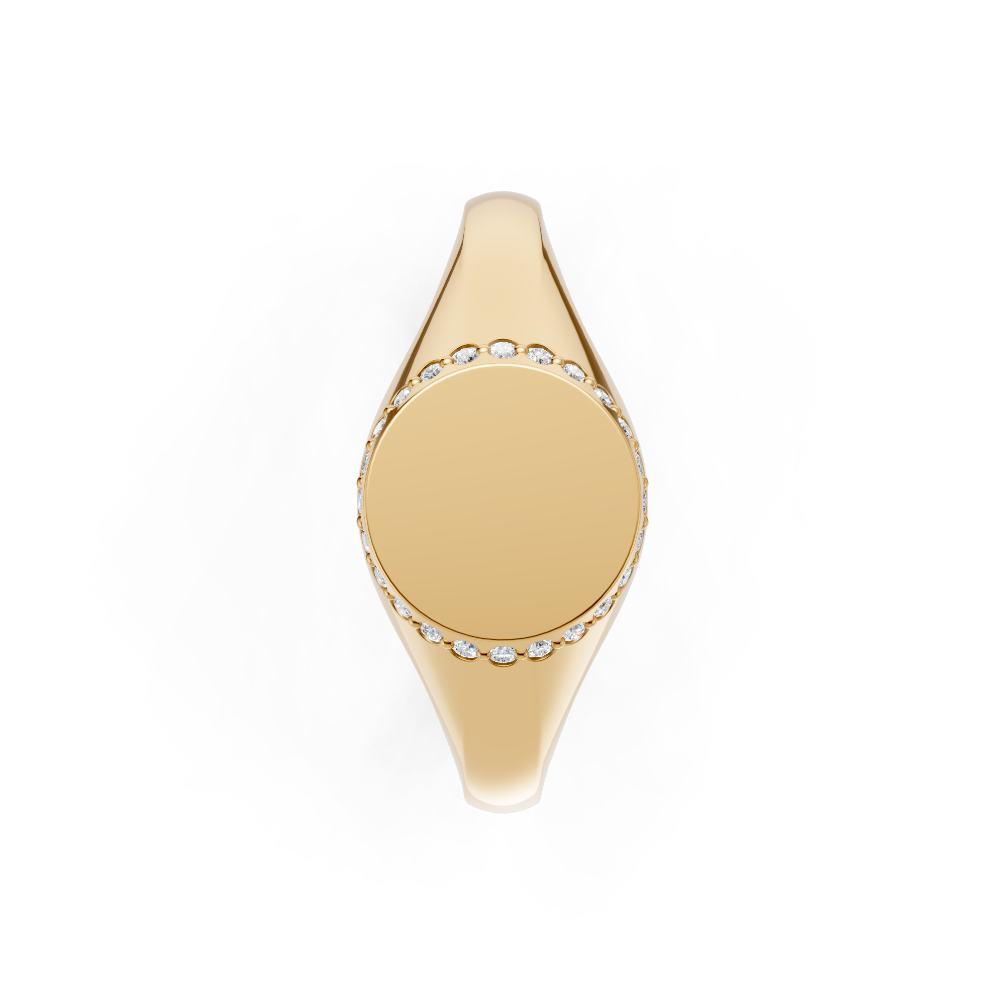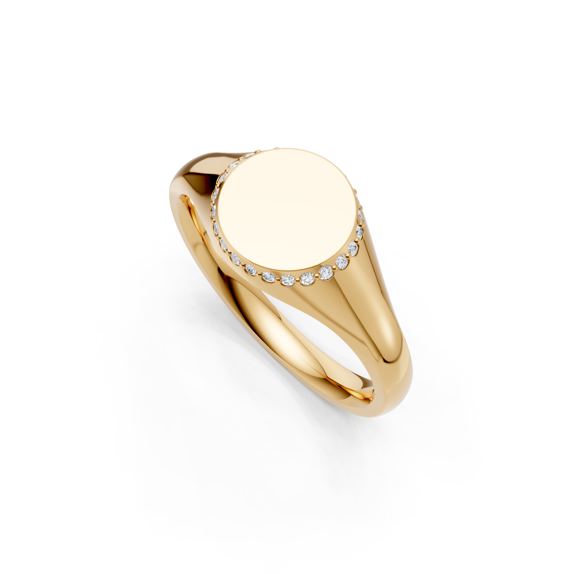 Round Shaped Diamond Set Bezel Signet Ring. Made to order in England