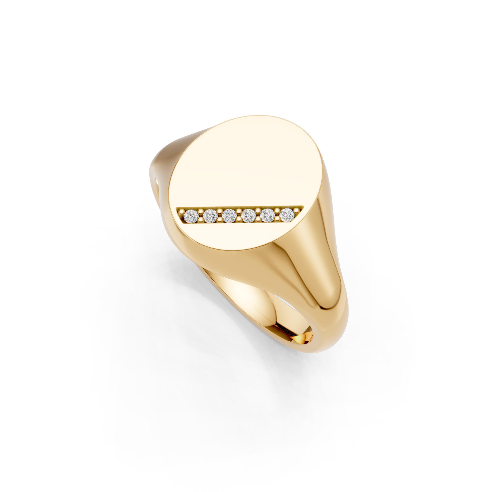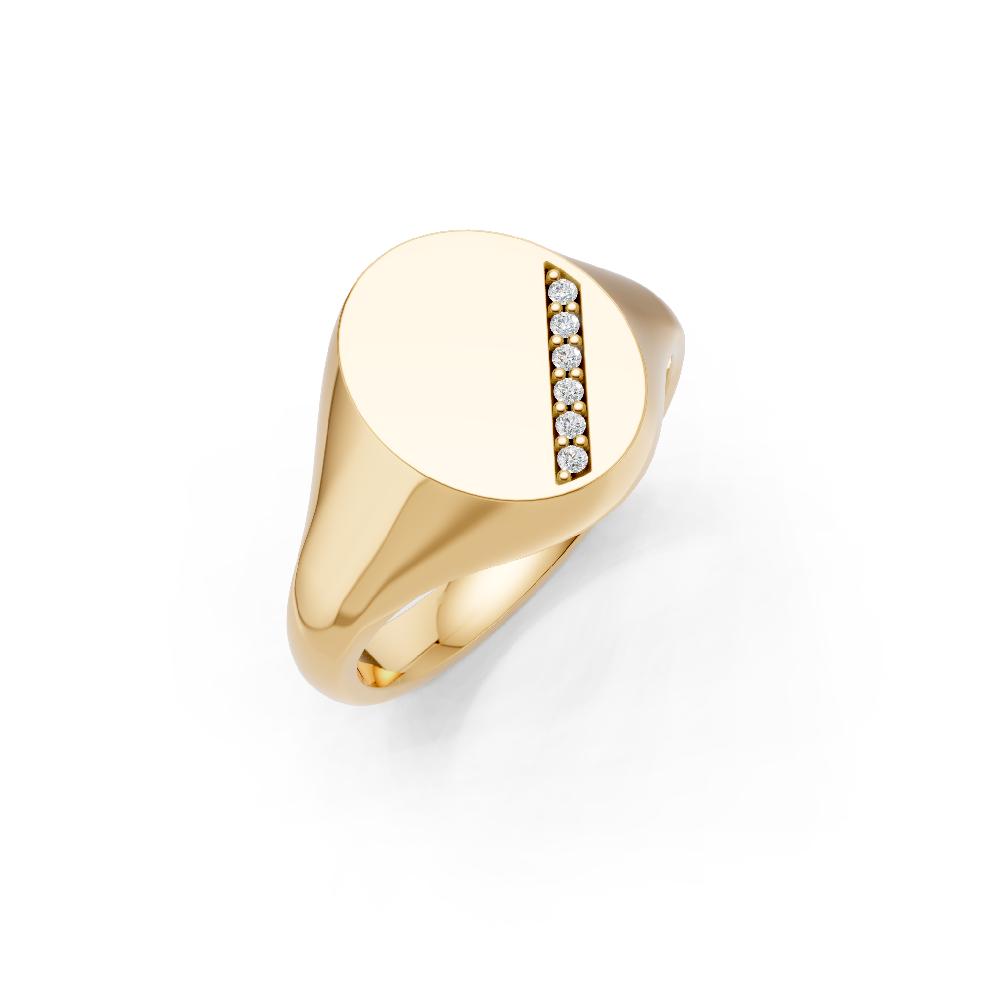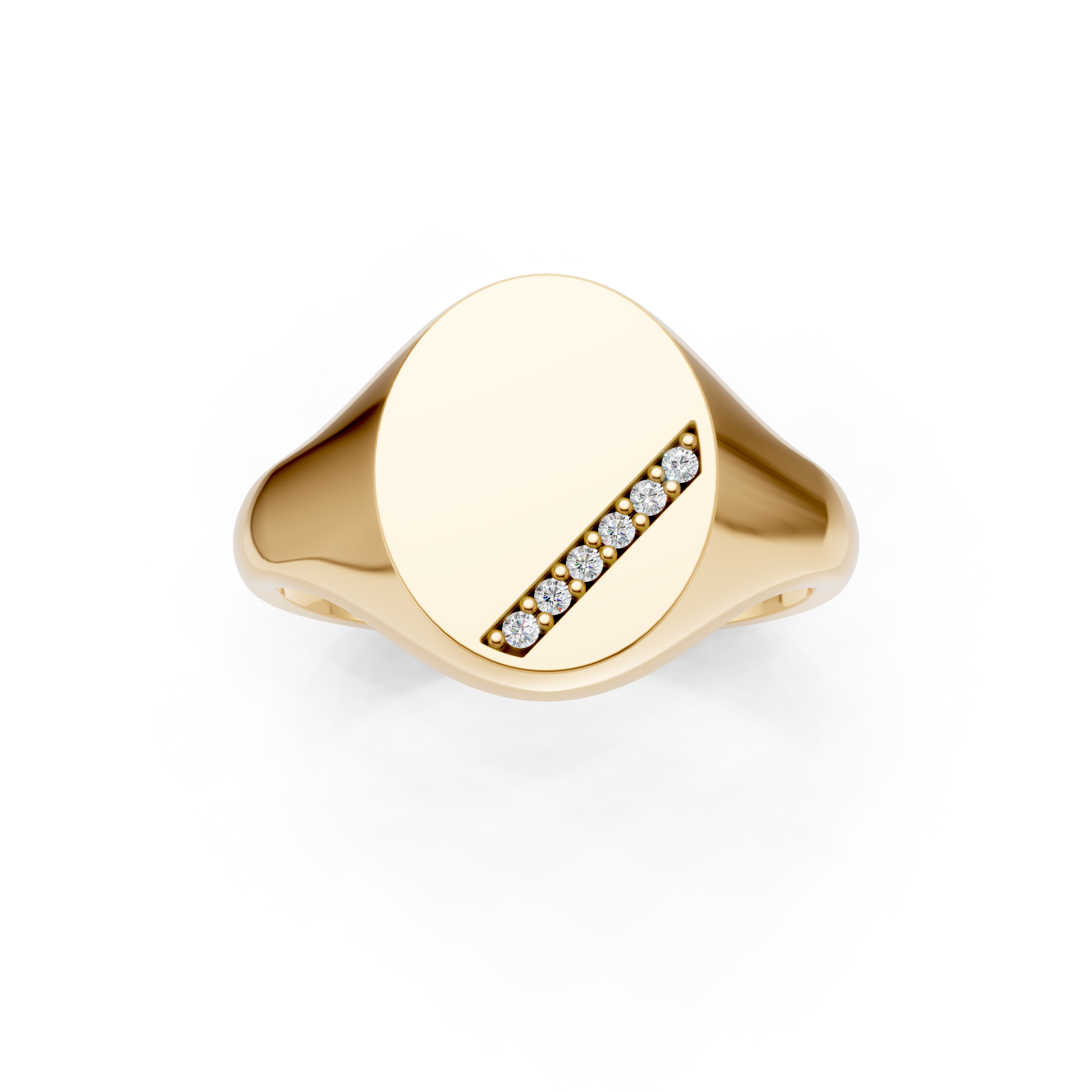 Oval Shaped Diamond Set Diagonal Channel Signet Ring