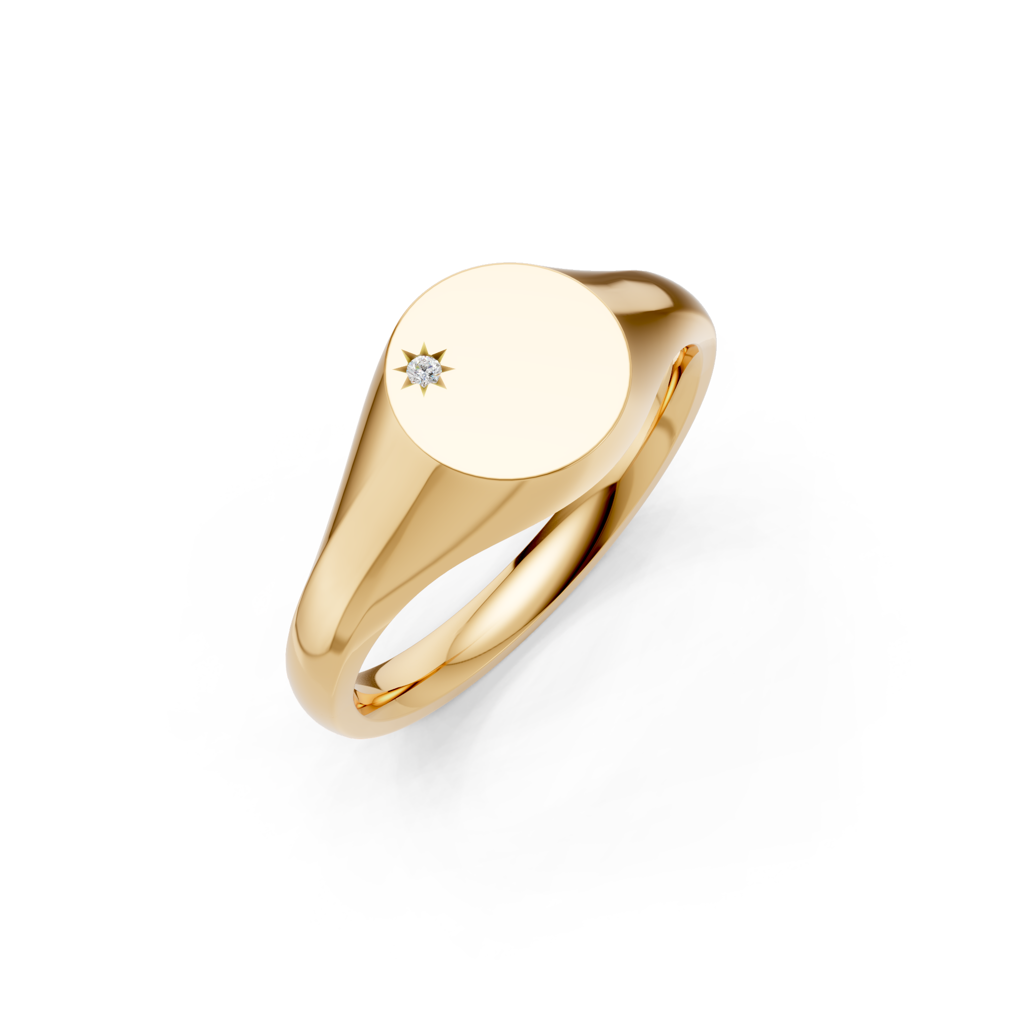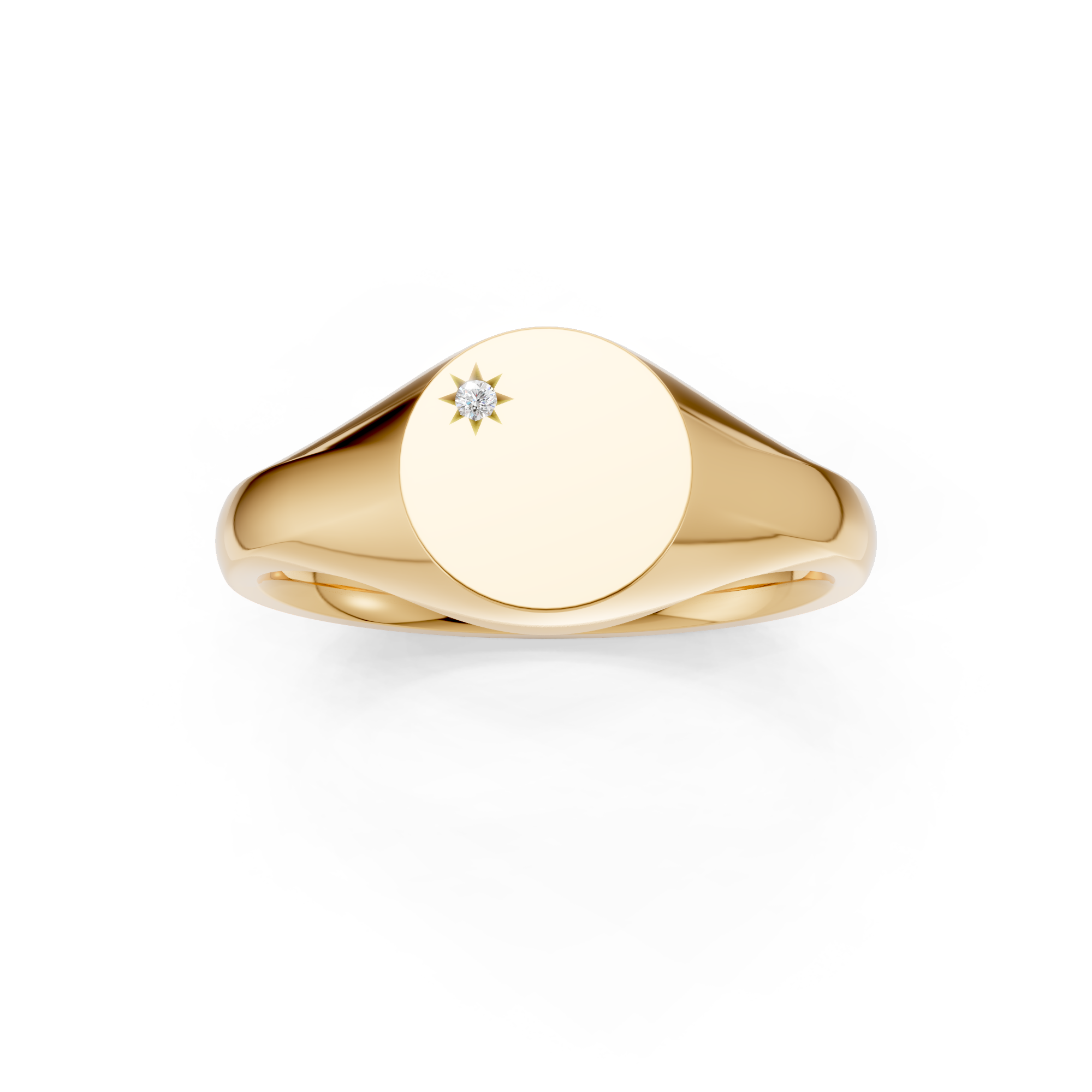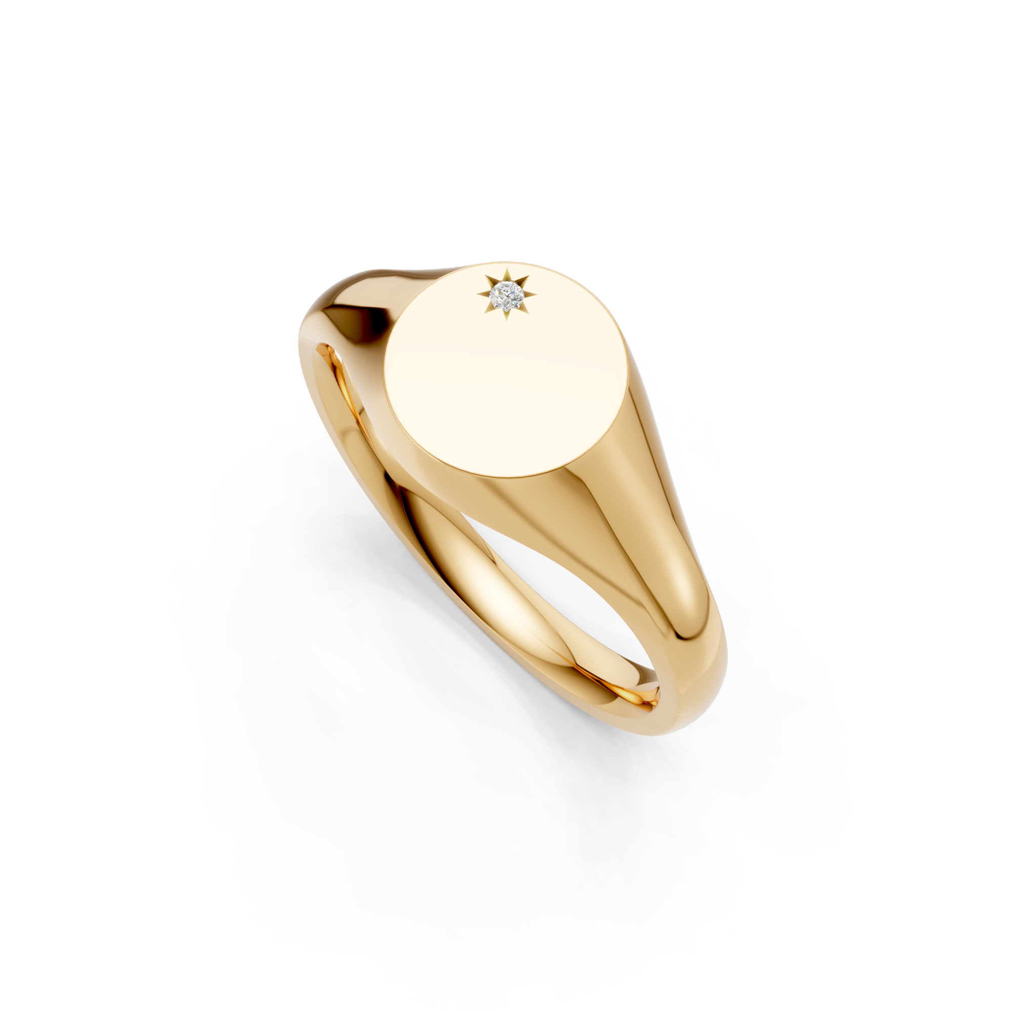 Round Shaped Diamond Set Starburst Signet Ring. Made to order in England