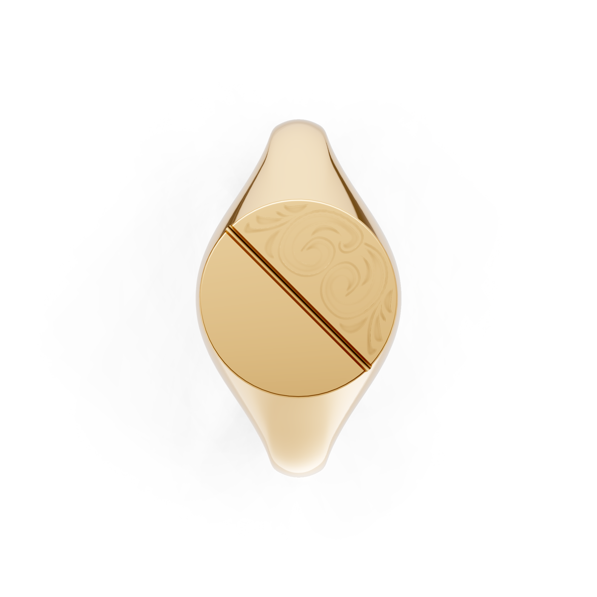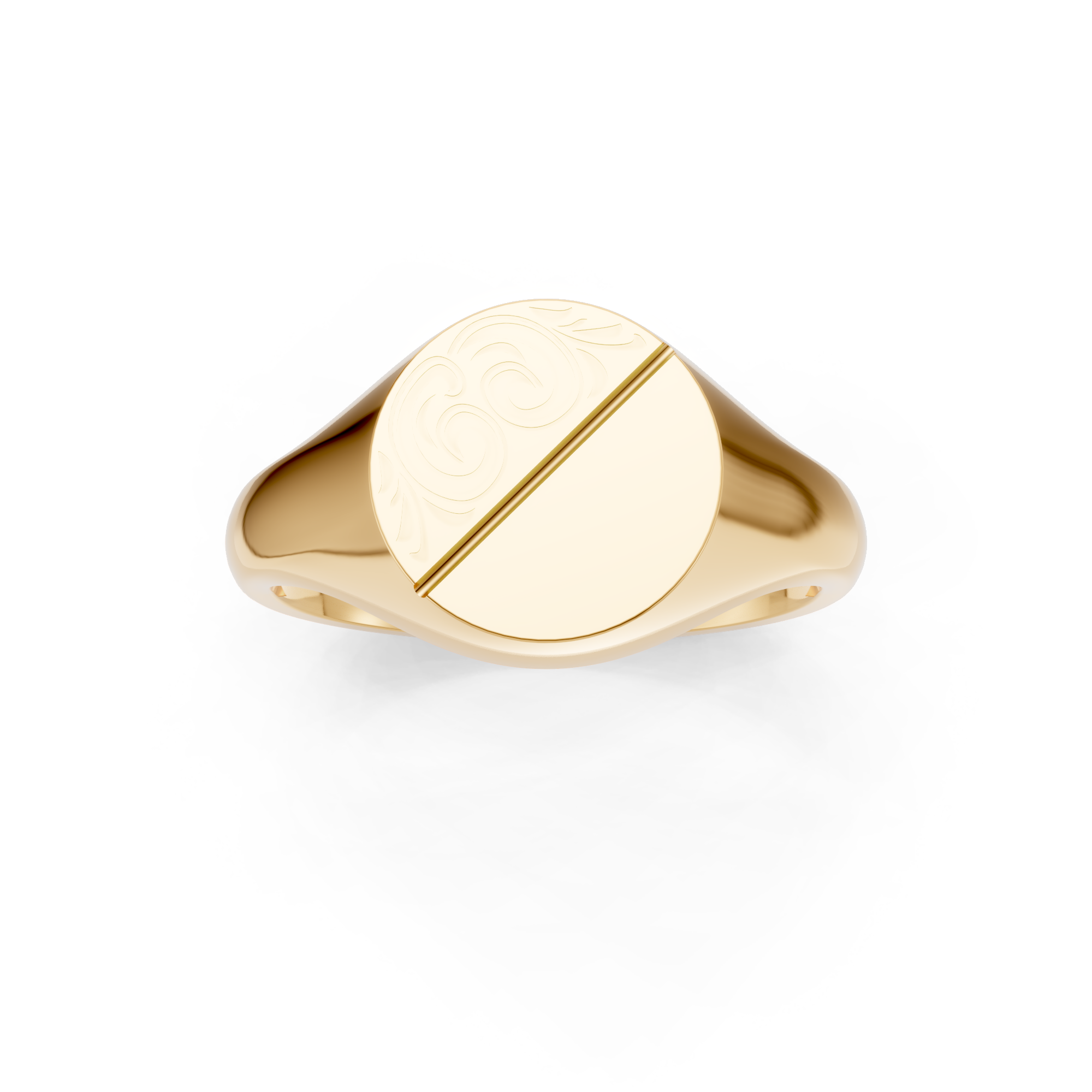 Round Shaped Half Engraved Diagonal Signet Ring. Made to order in England