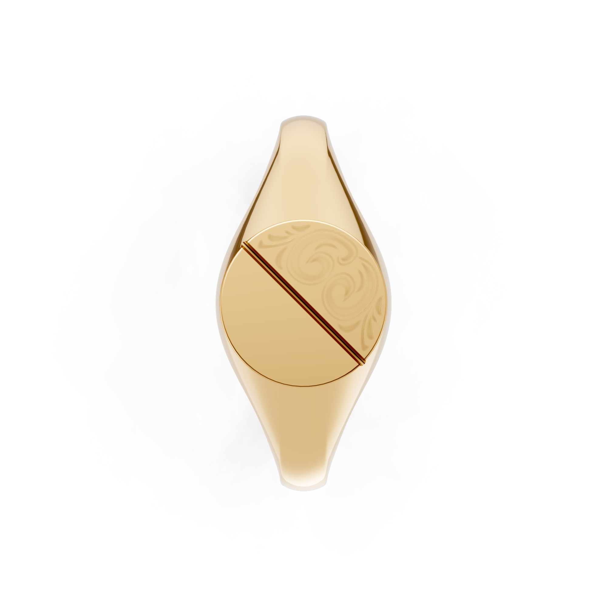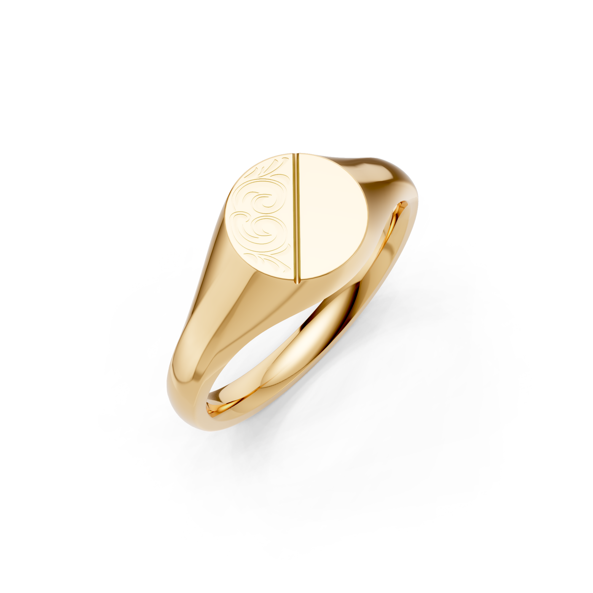 Round Shaped Half Engraved Diagonal Signet Ring