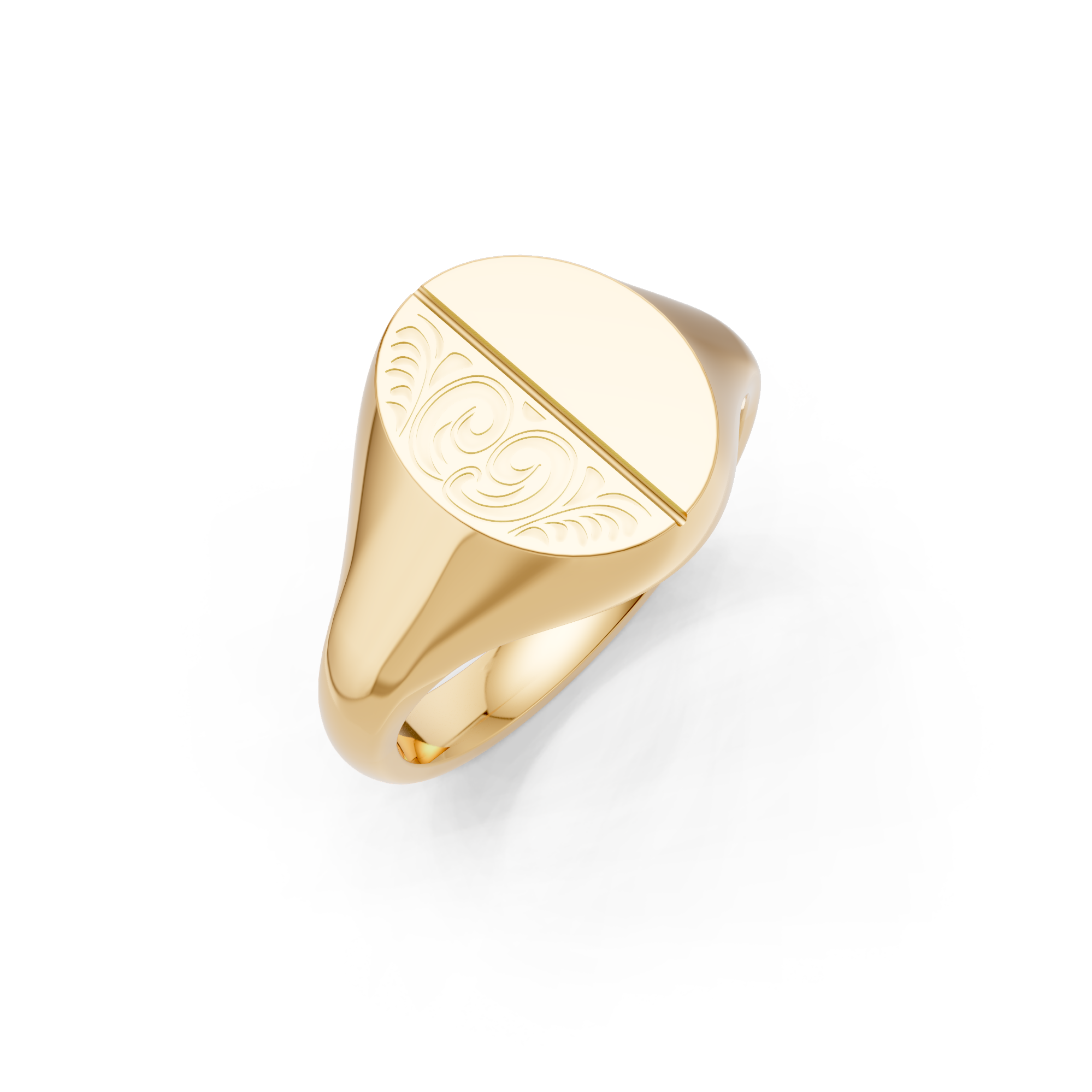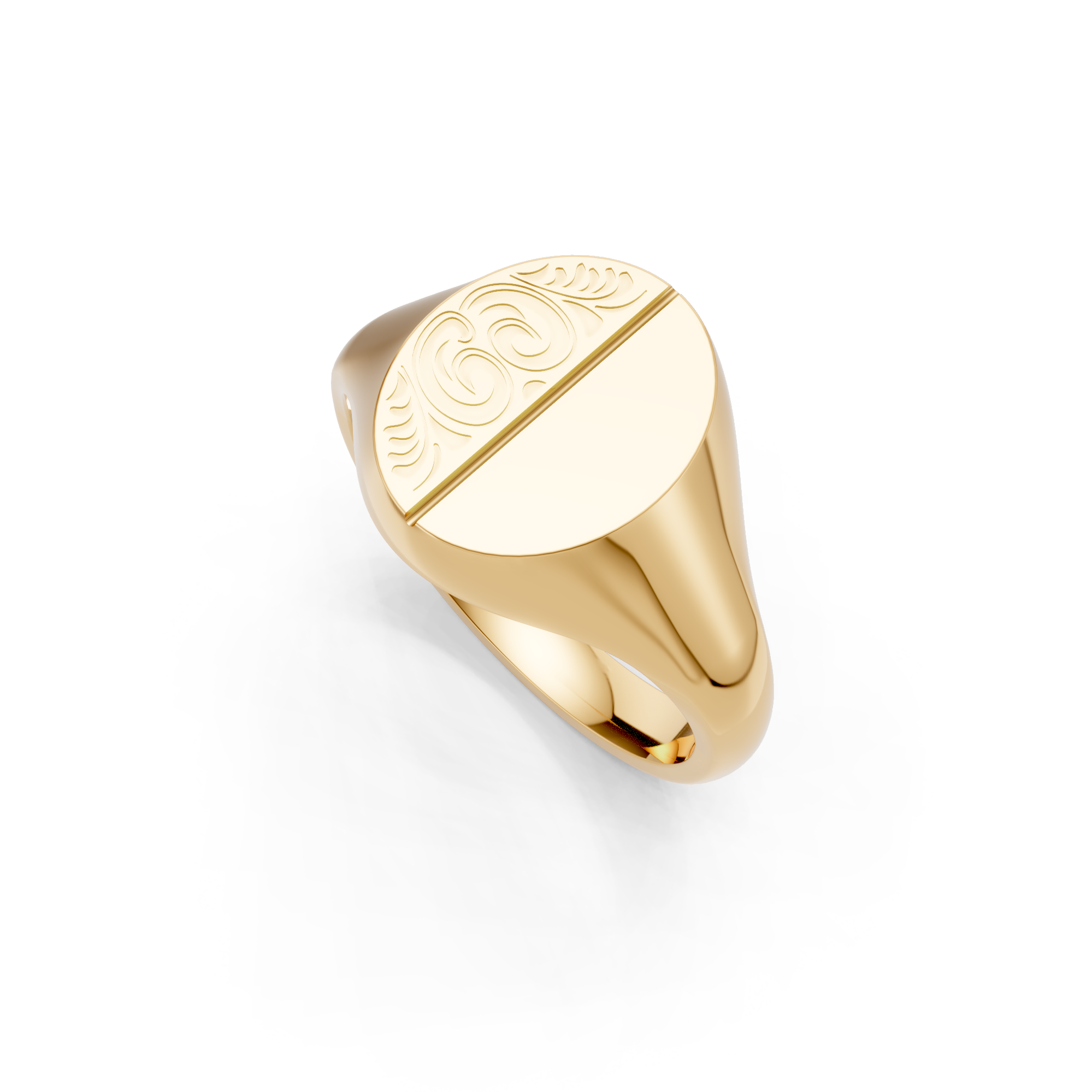 Oval Shaped Half Engraved Vertical Signet Ring. Made to order in England.