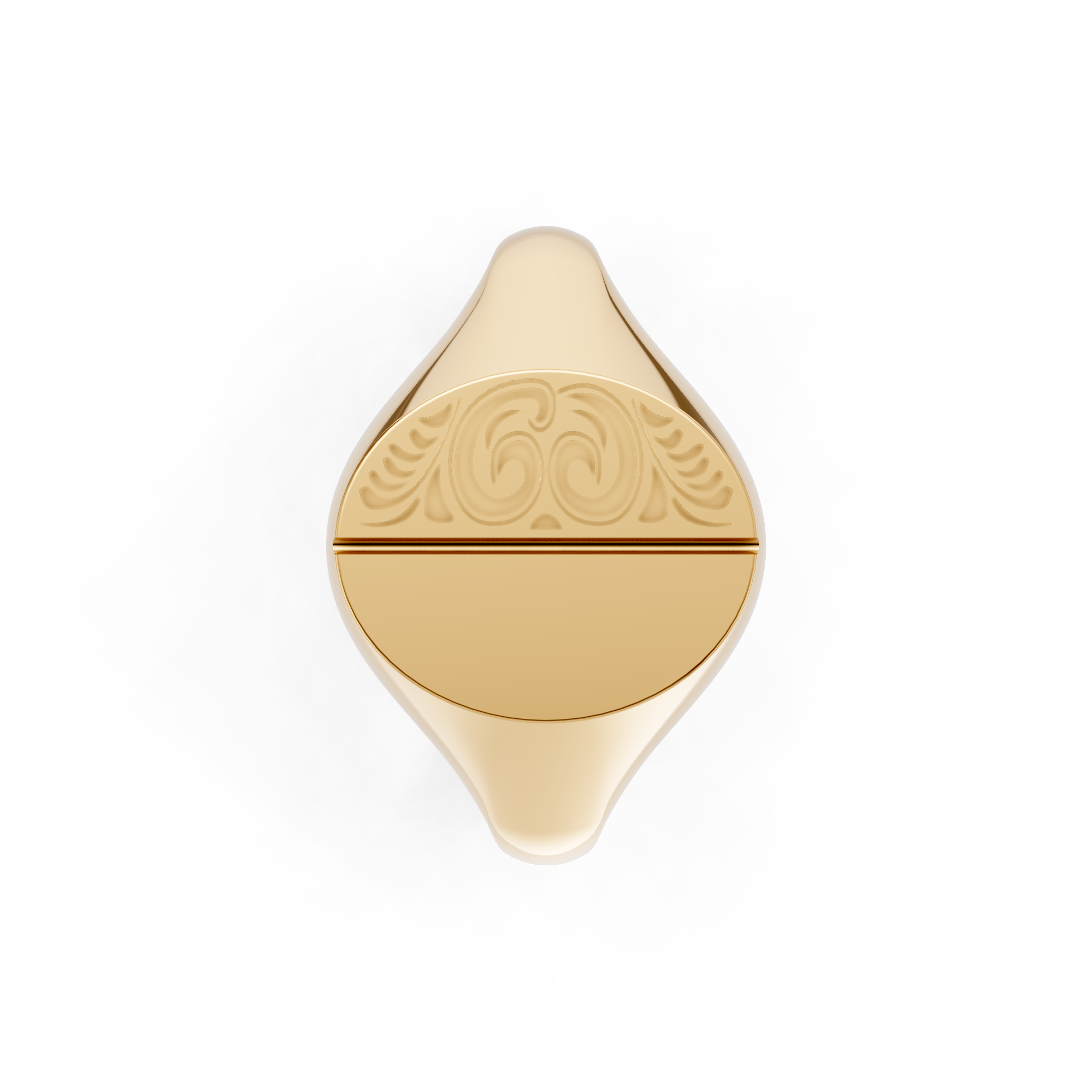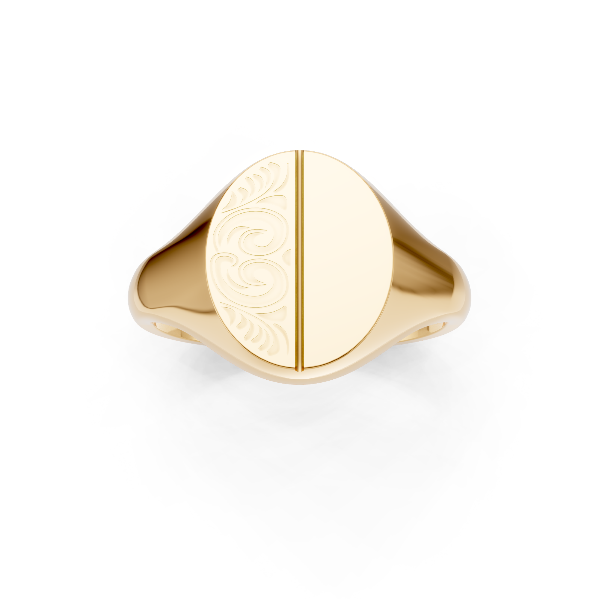 Oval Shaped Half Engraved Vertical Signet Ring