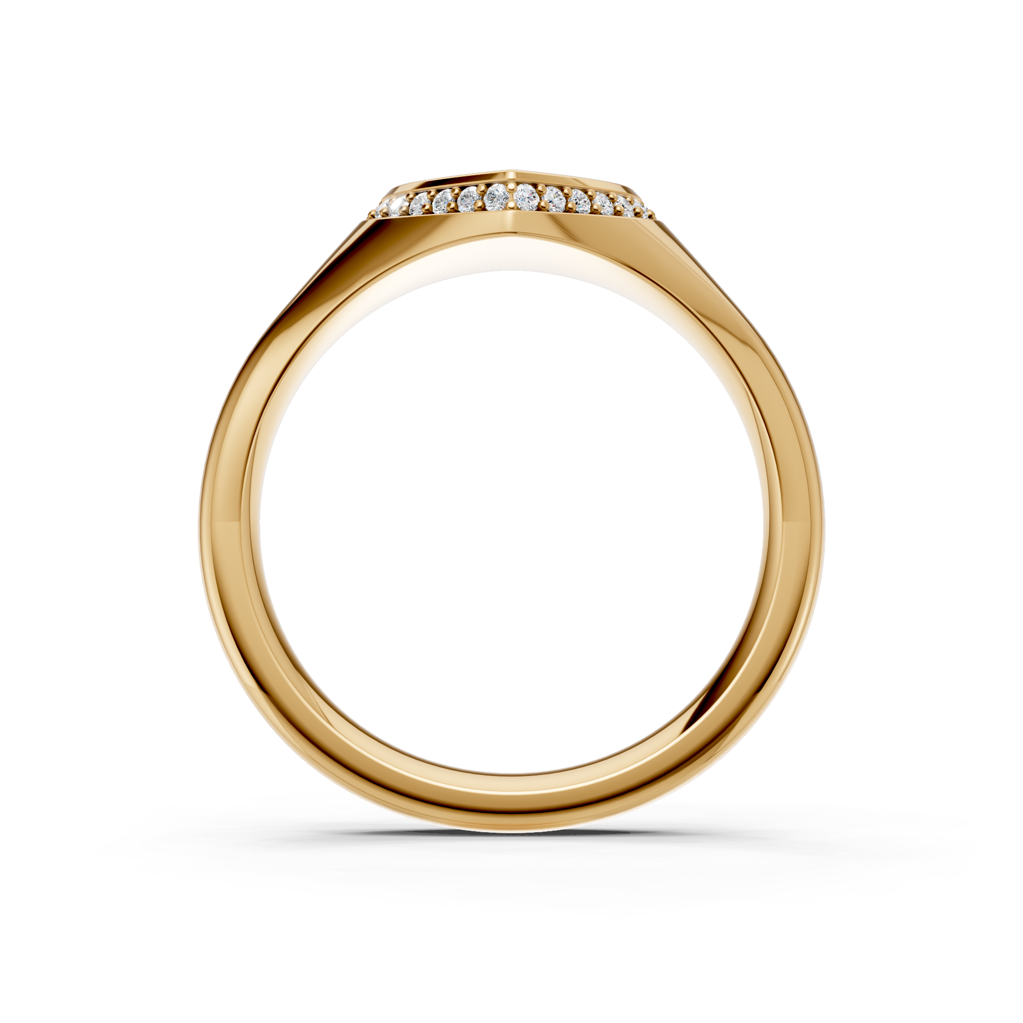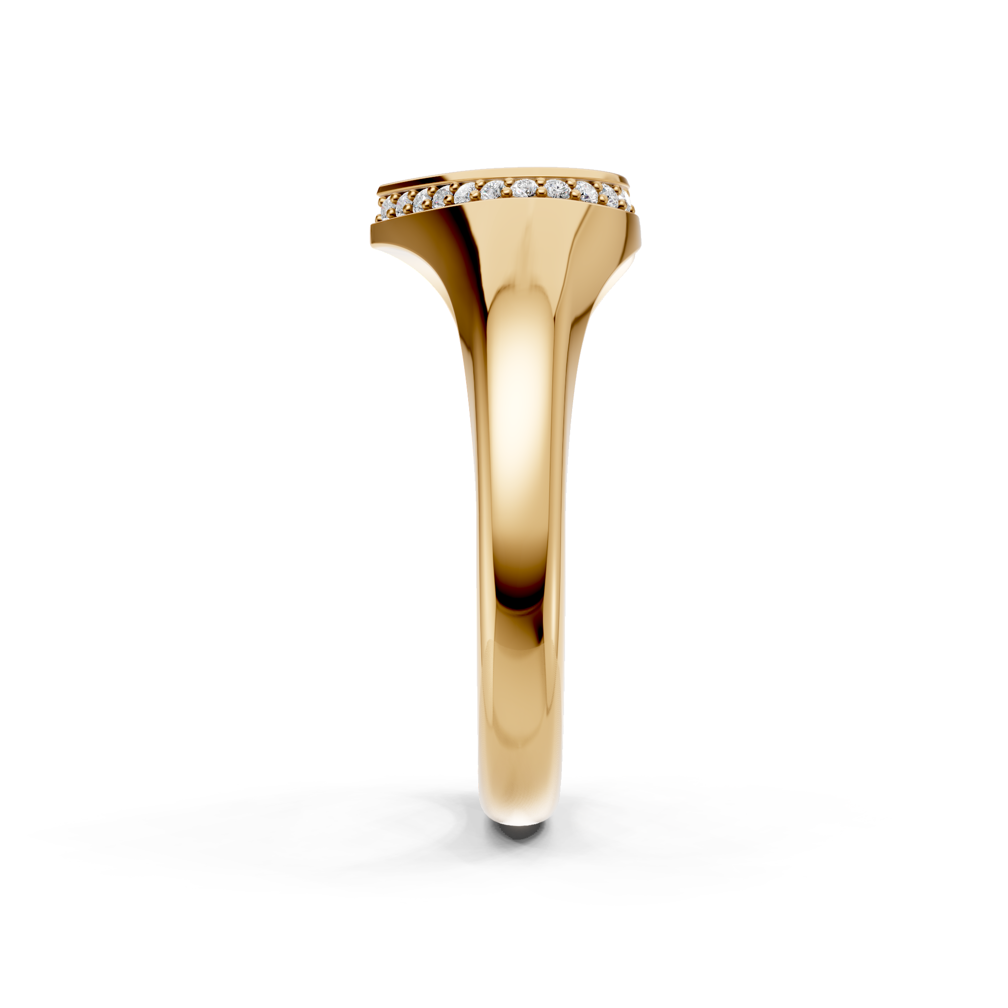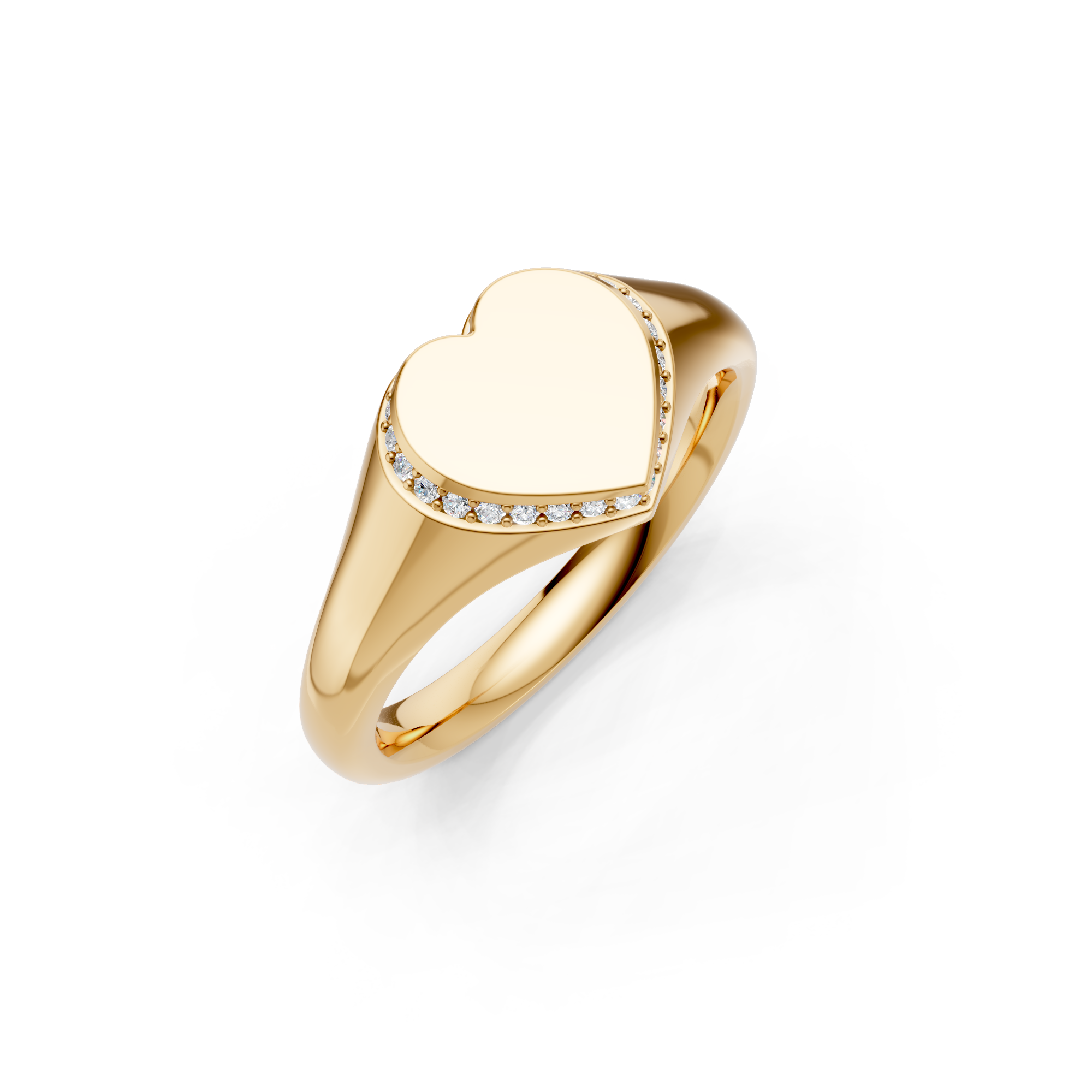 Heart Shaped Diamond Set Bezel Signet Ring. Made to order in England.