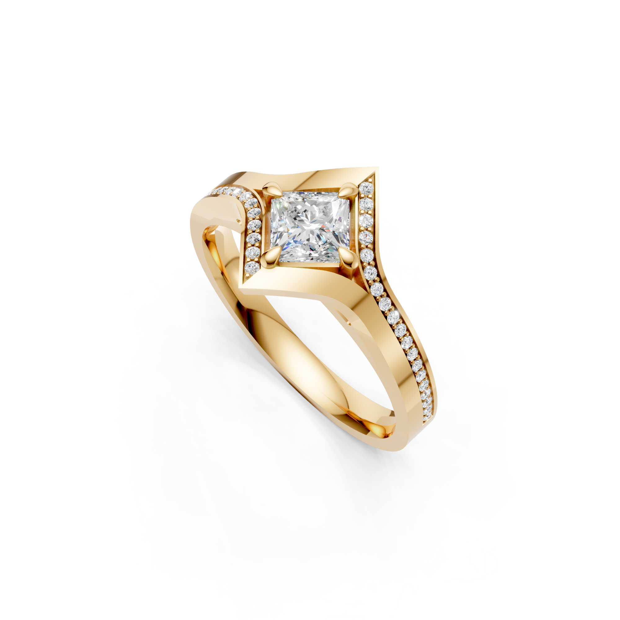 Cheyne Flat Court Solitaire Engagement Ring with Diamond Set Shoulders
