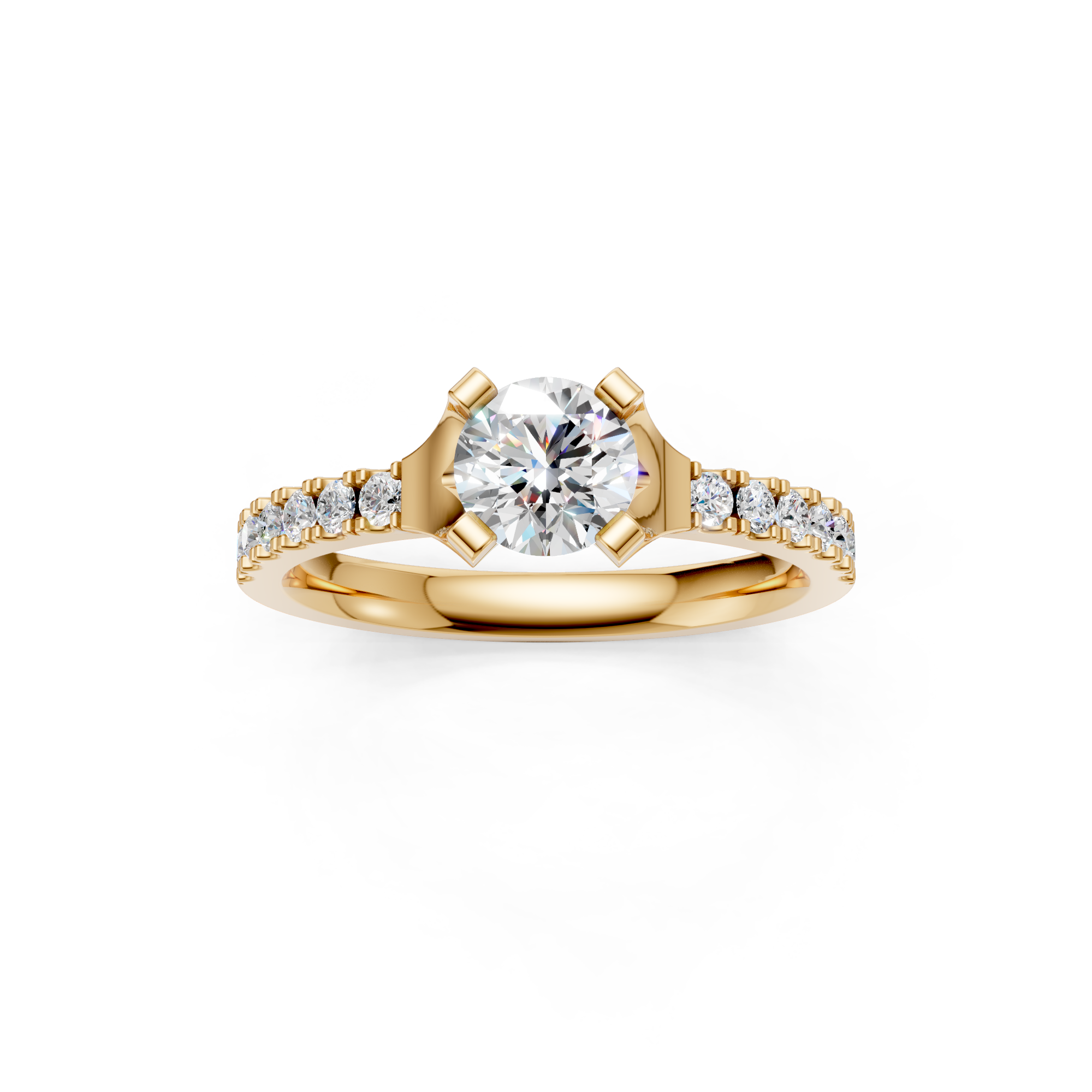 Alderney Premium Flat Court Solitaire Engagement Ring with Diamond Set Shoulders