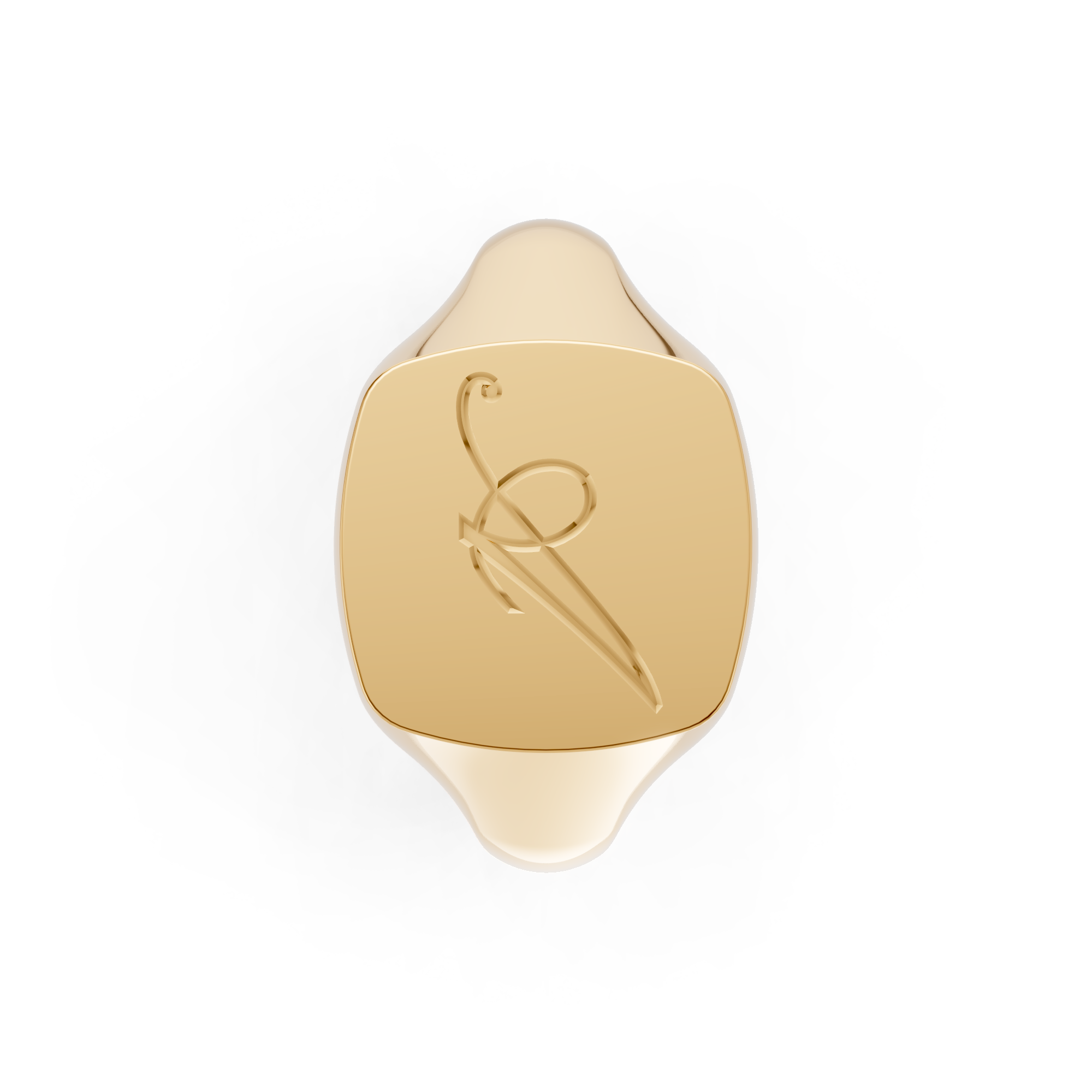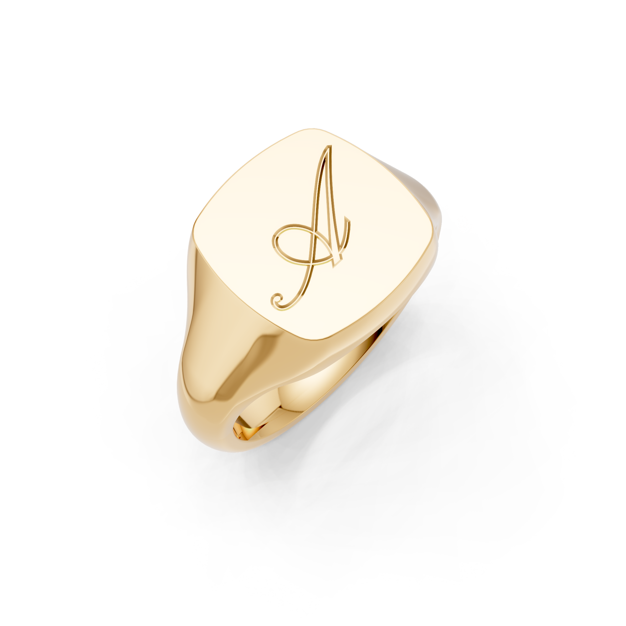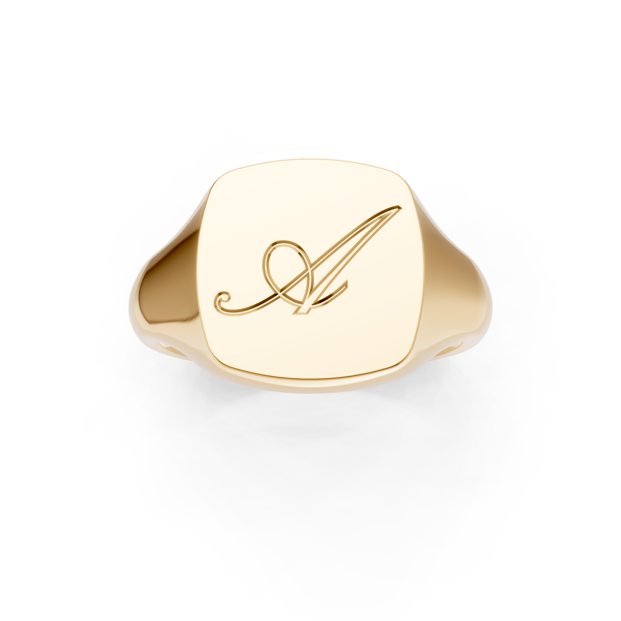 Cushion Shaped Initial Engraved Signet Ring. Made to order in England.