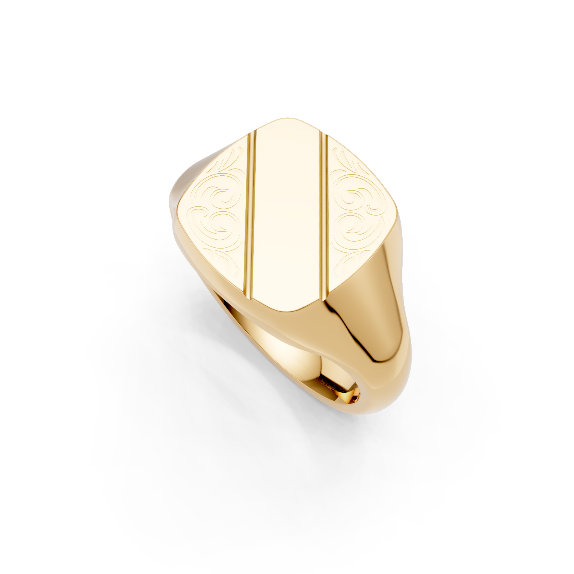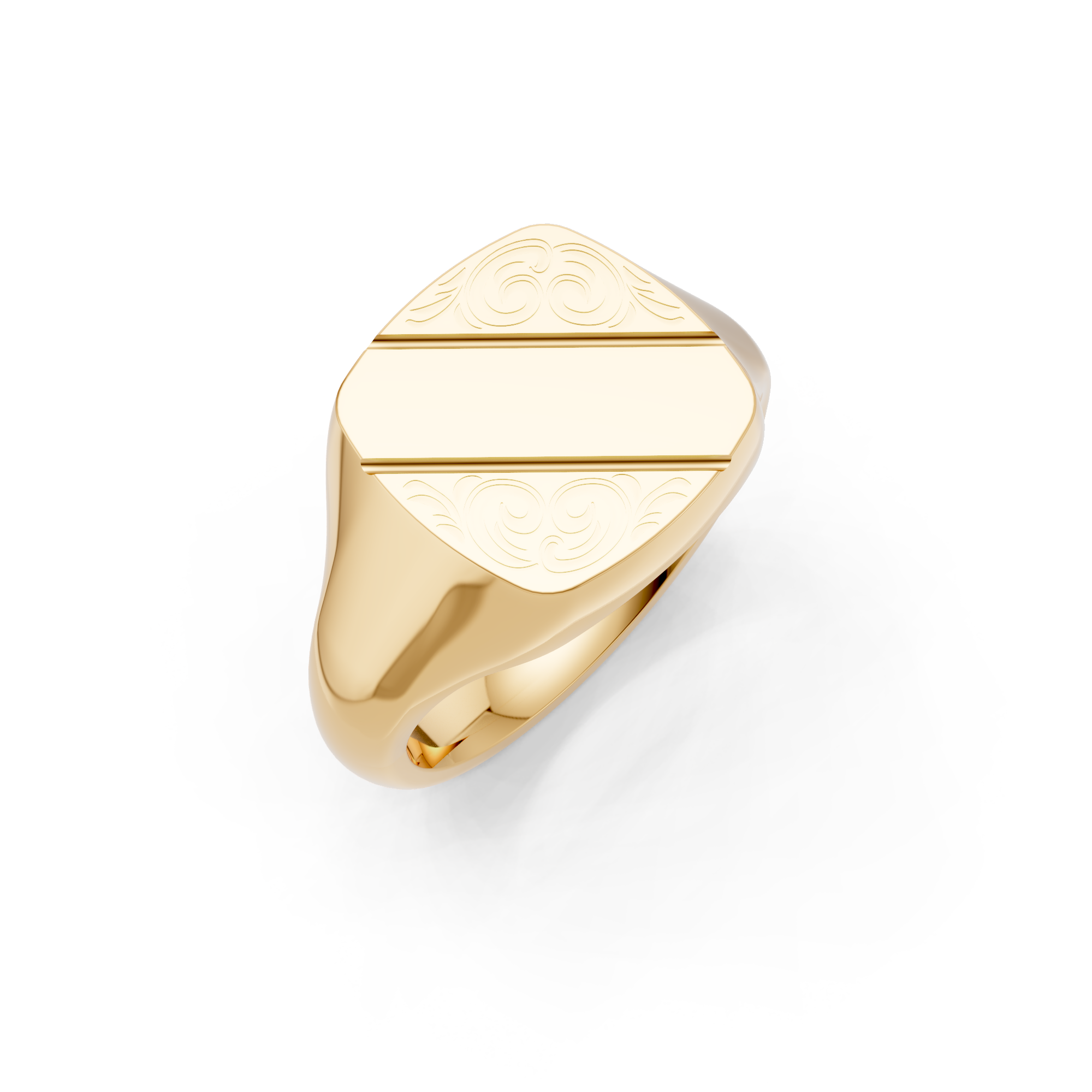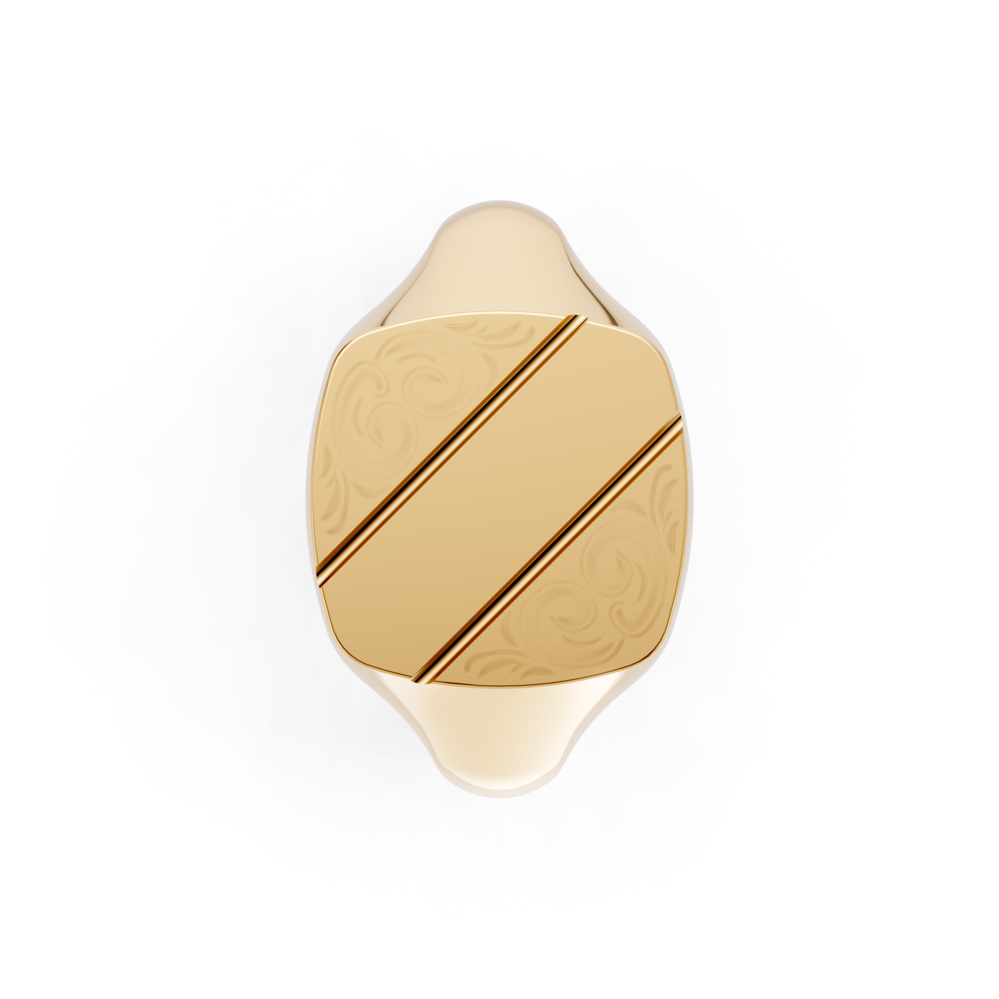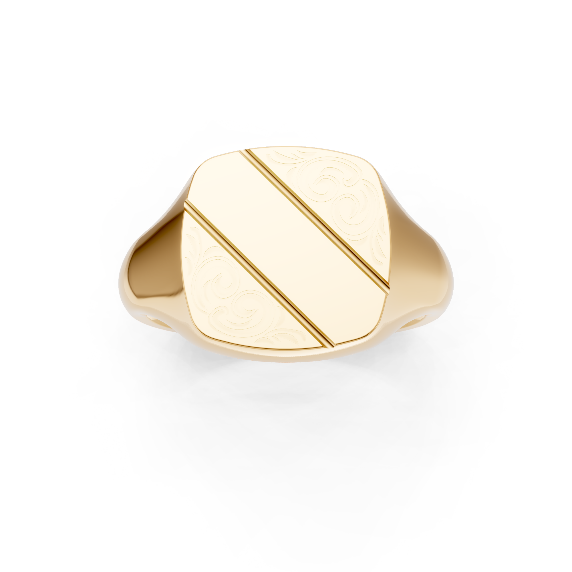 Cushion Shaped 2/3 Engraved Signet Ring