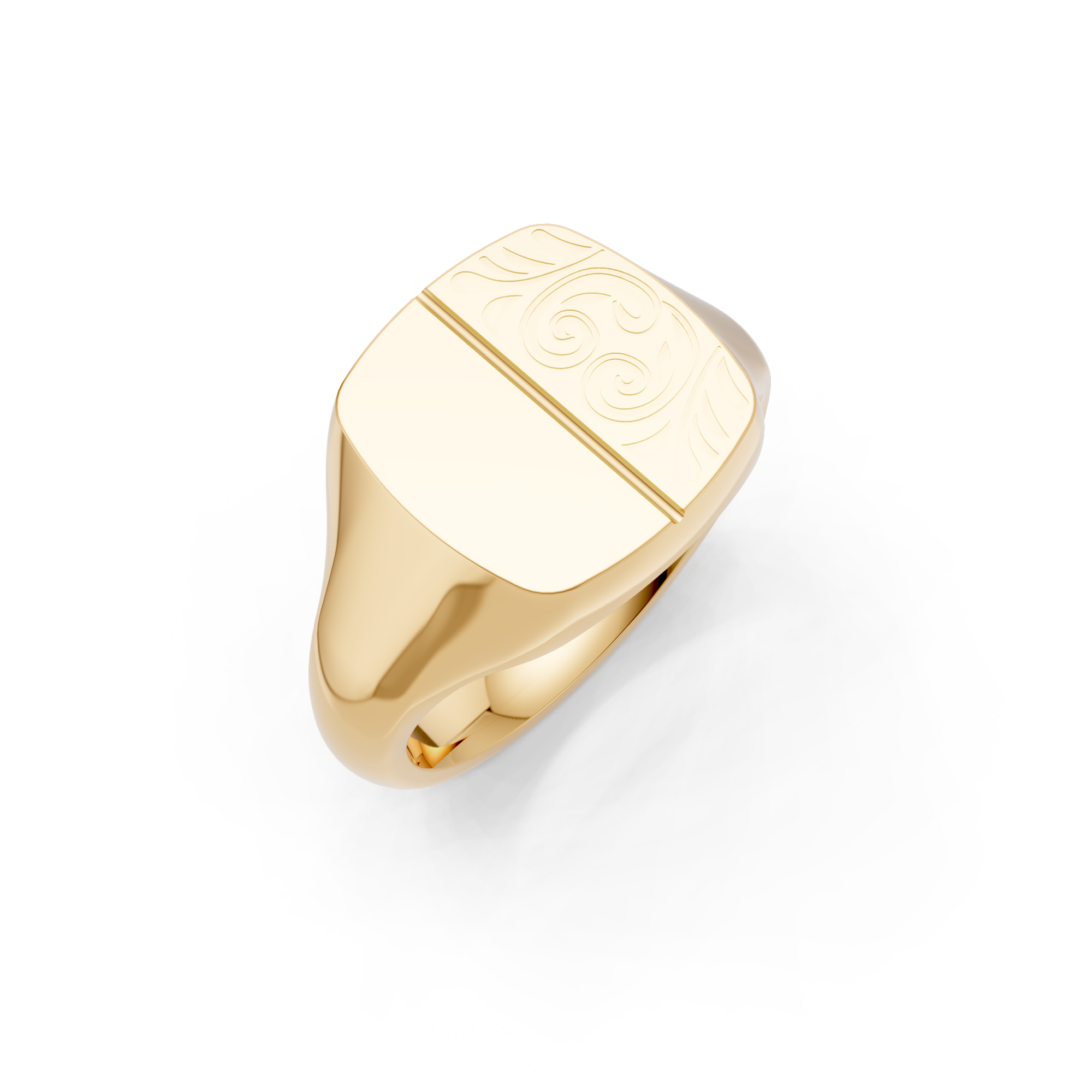 Cushion Shaped Half Engraved Vertical Signet Ring. Made to order in England.