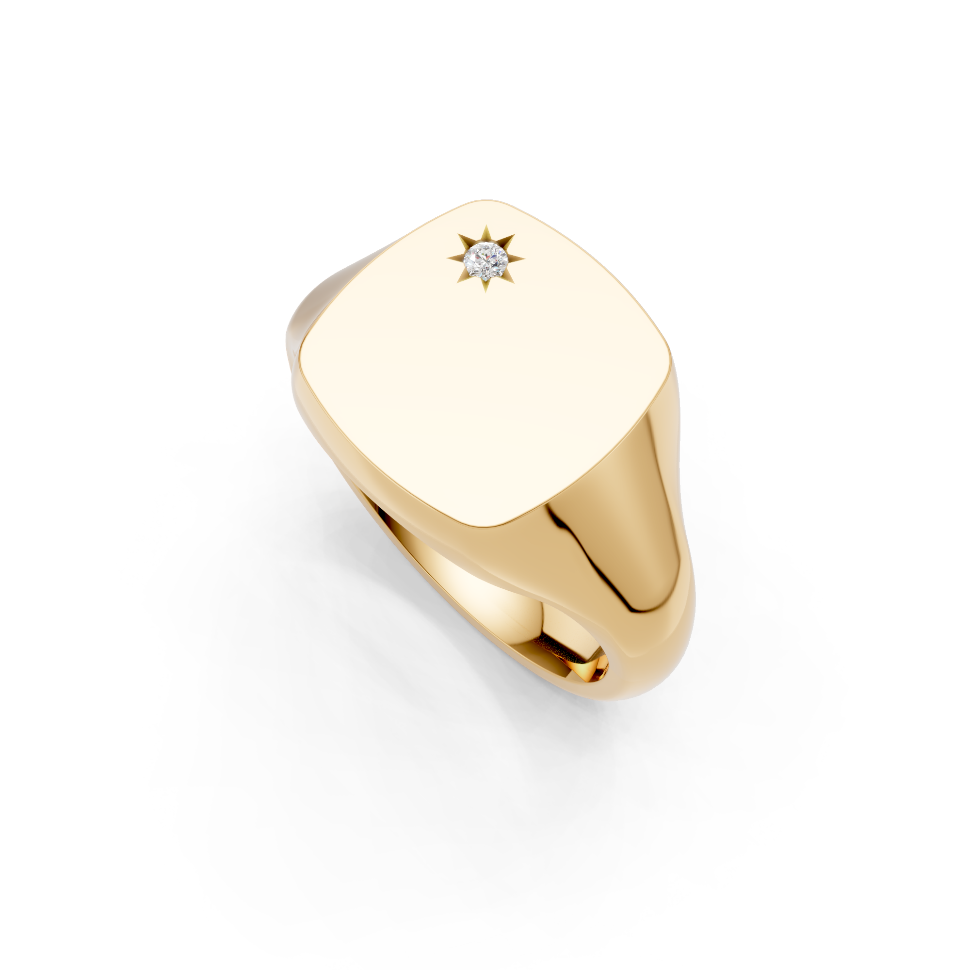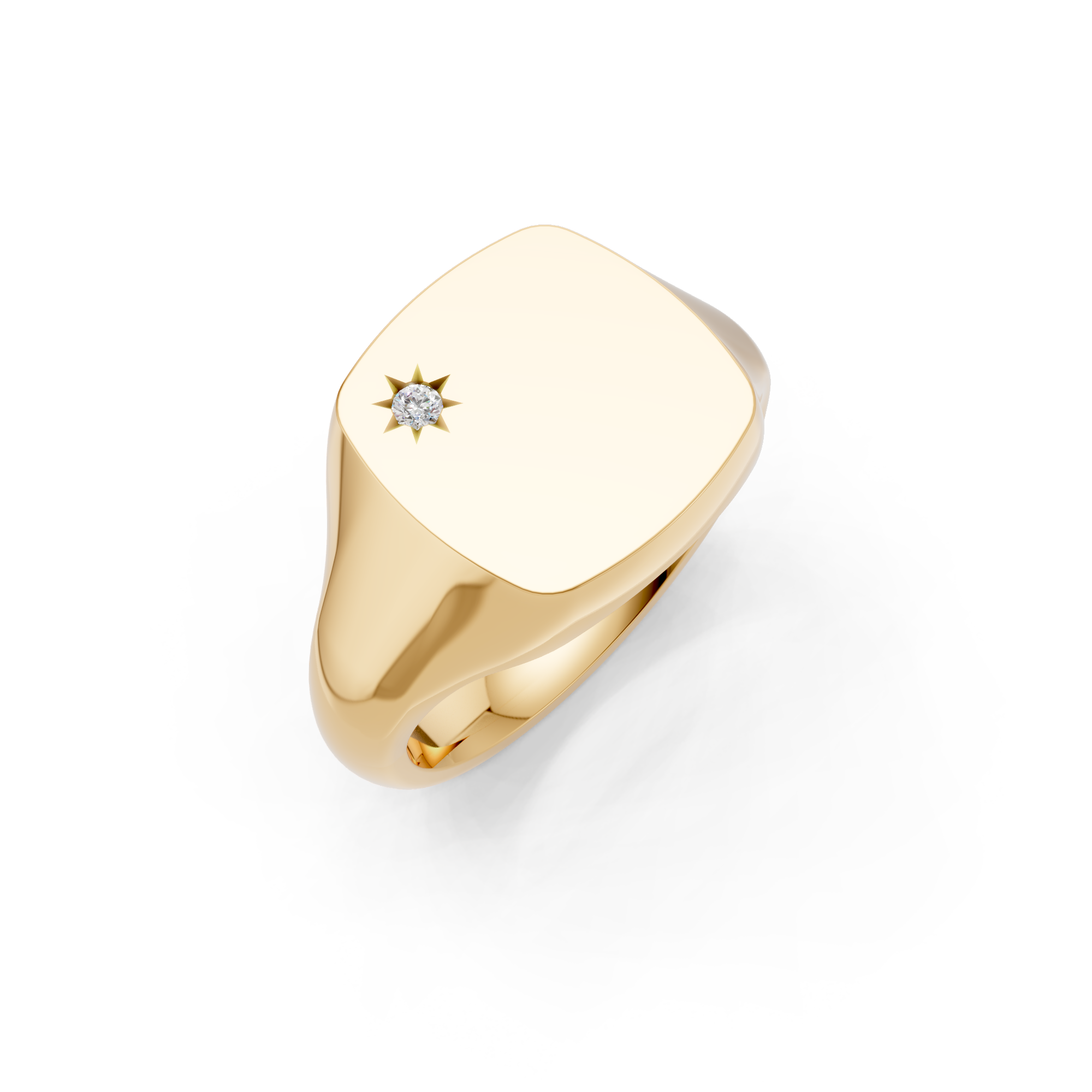 Cushion Shaped Diamond Set Starburst Signet Ring