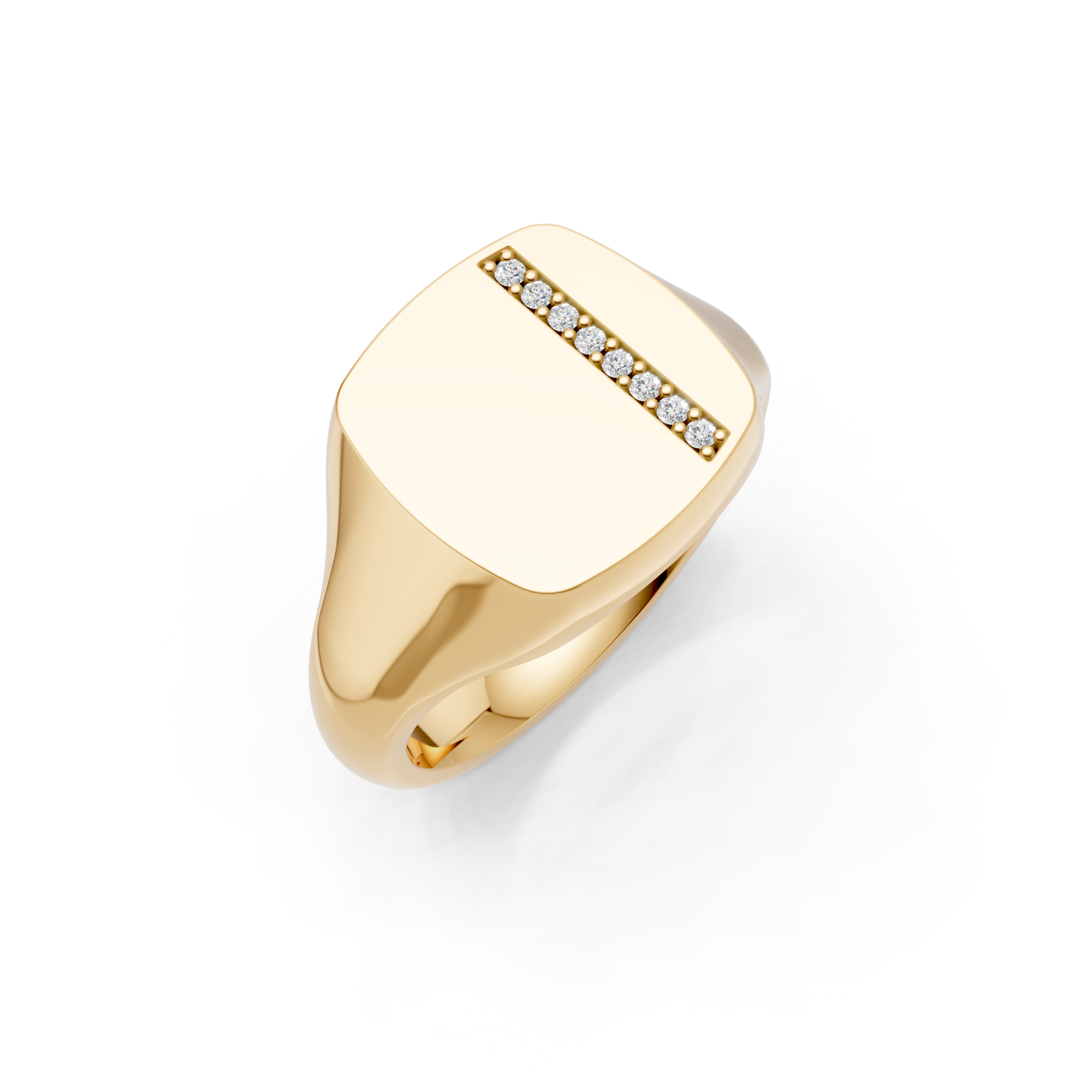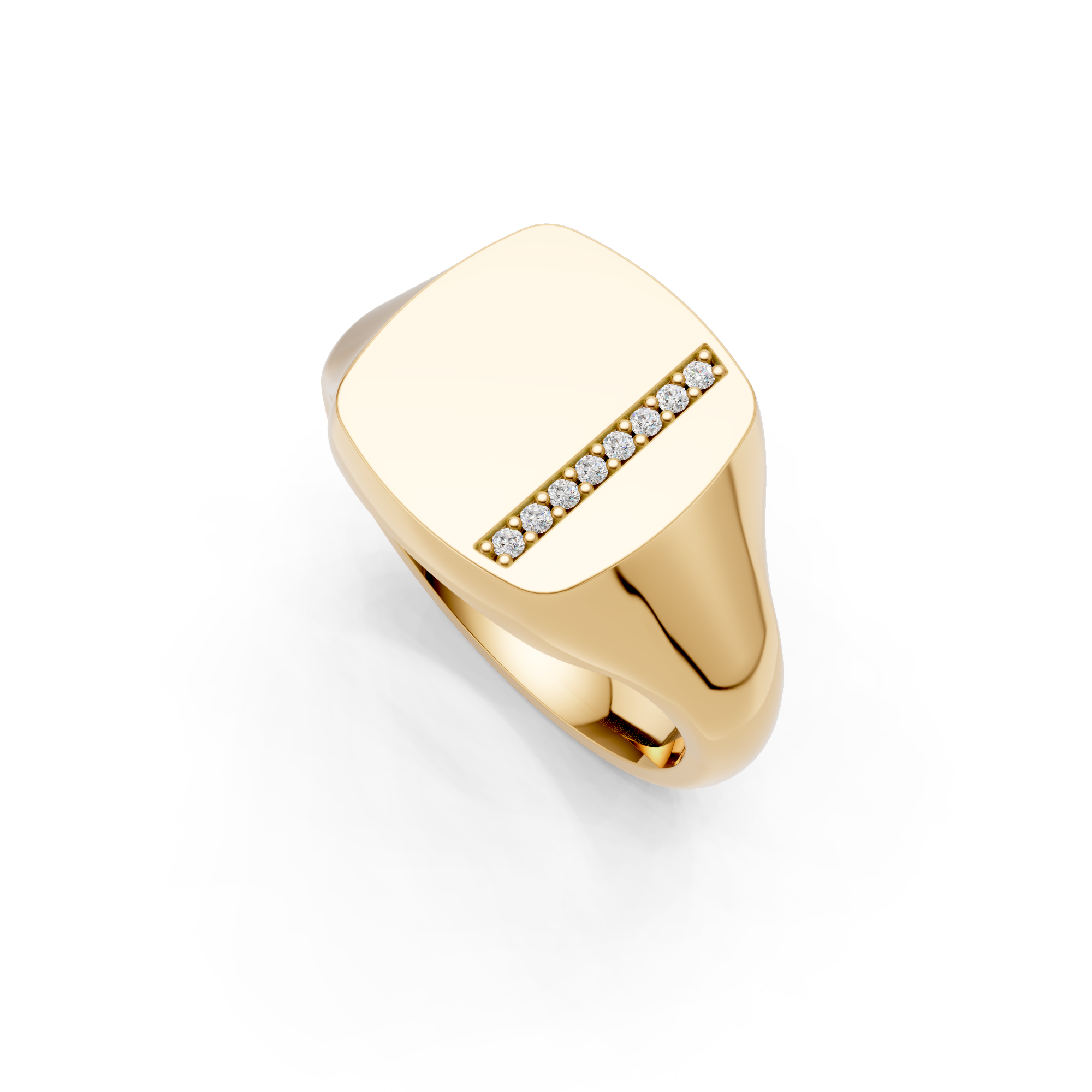 Cushion Shaped Diamond Set Vertical Channel Signet Ring