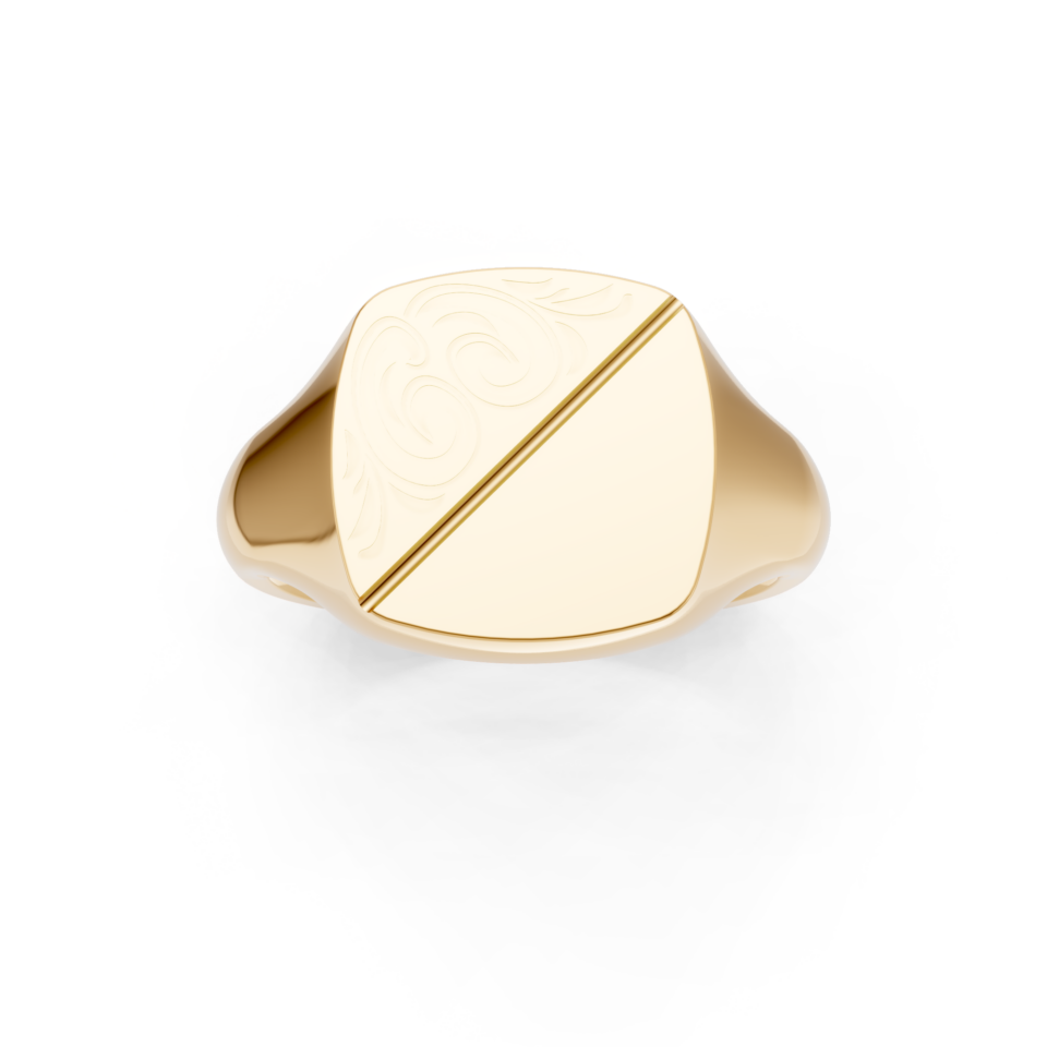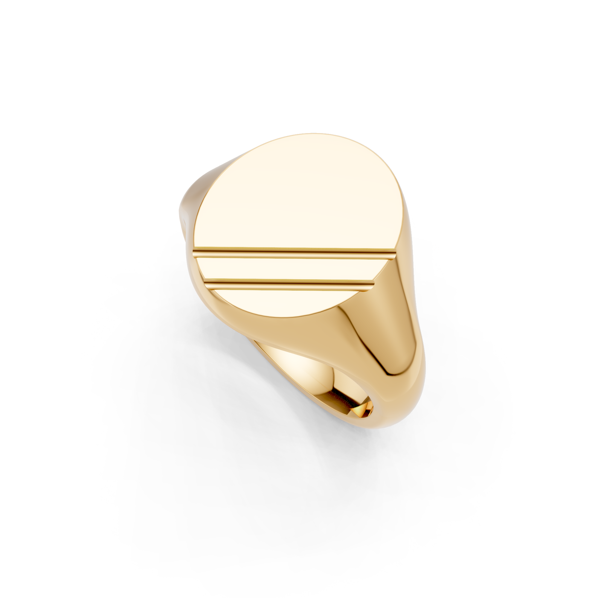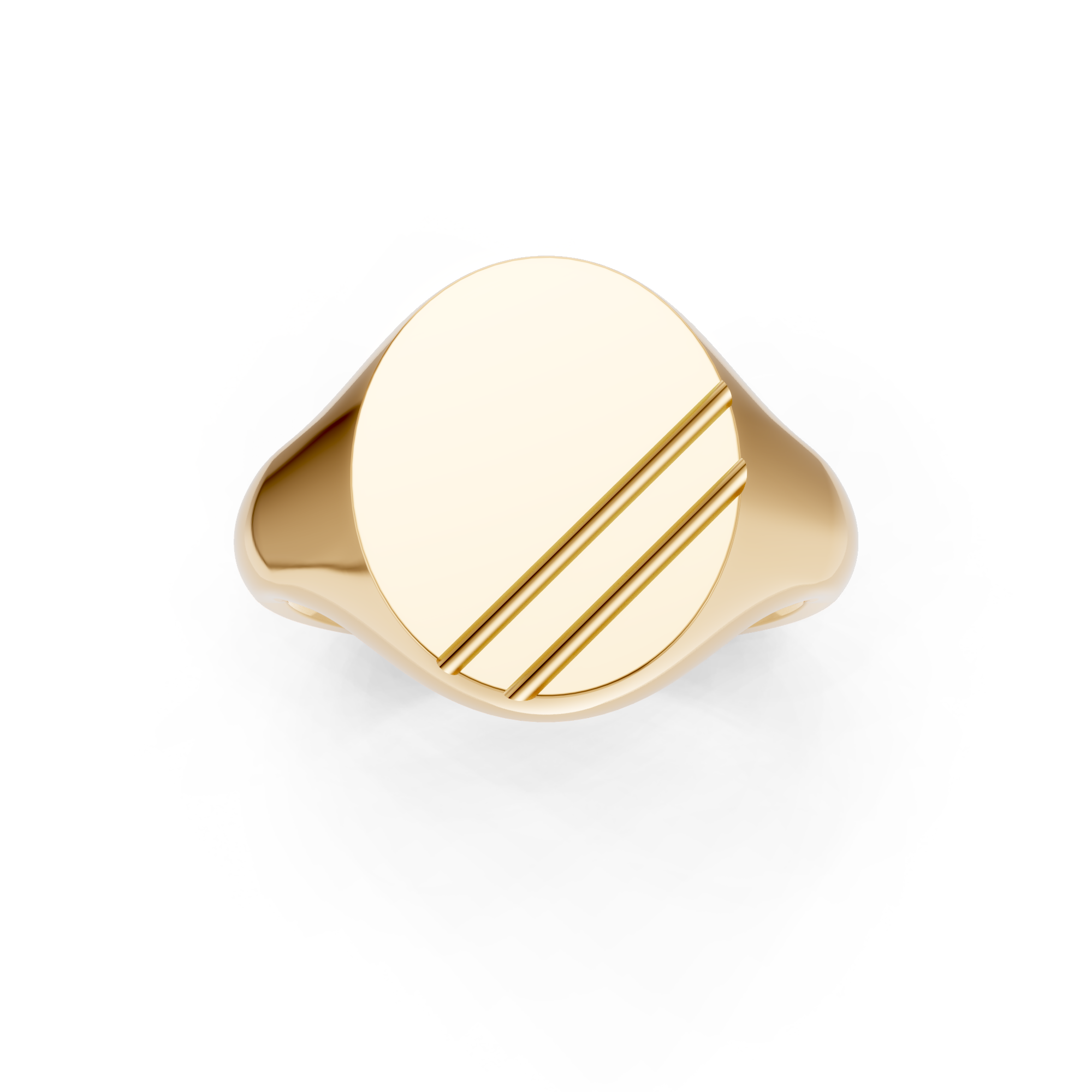 Oval Shaped Angled Grooves Signet Ring. Made to order in England.