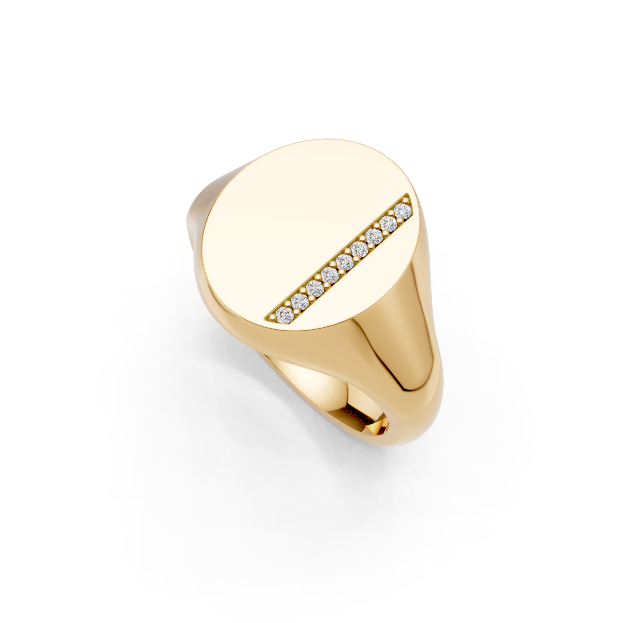 Oval Shaped Diamond Set Vertical Channel Signet Ring. Made to order in England.