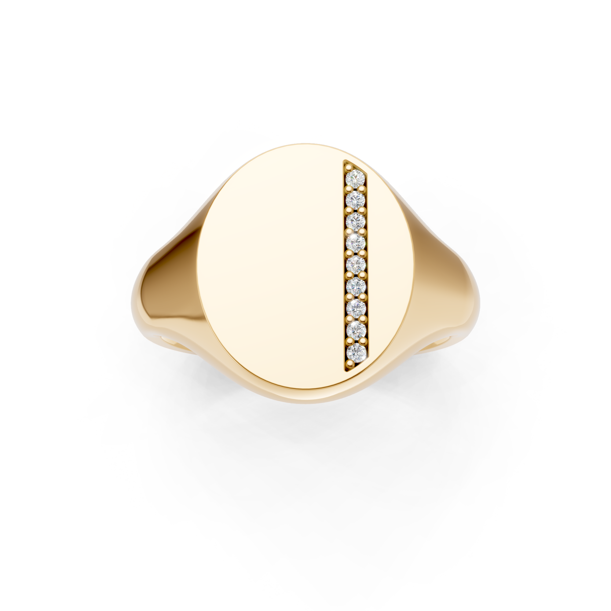 Oval Shaped Diamond Set Vertical Channel Signet Ring