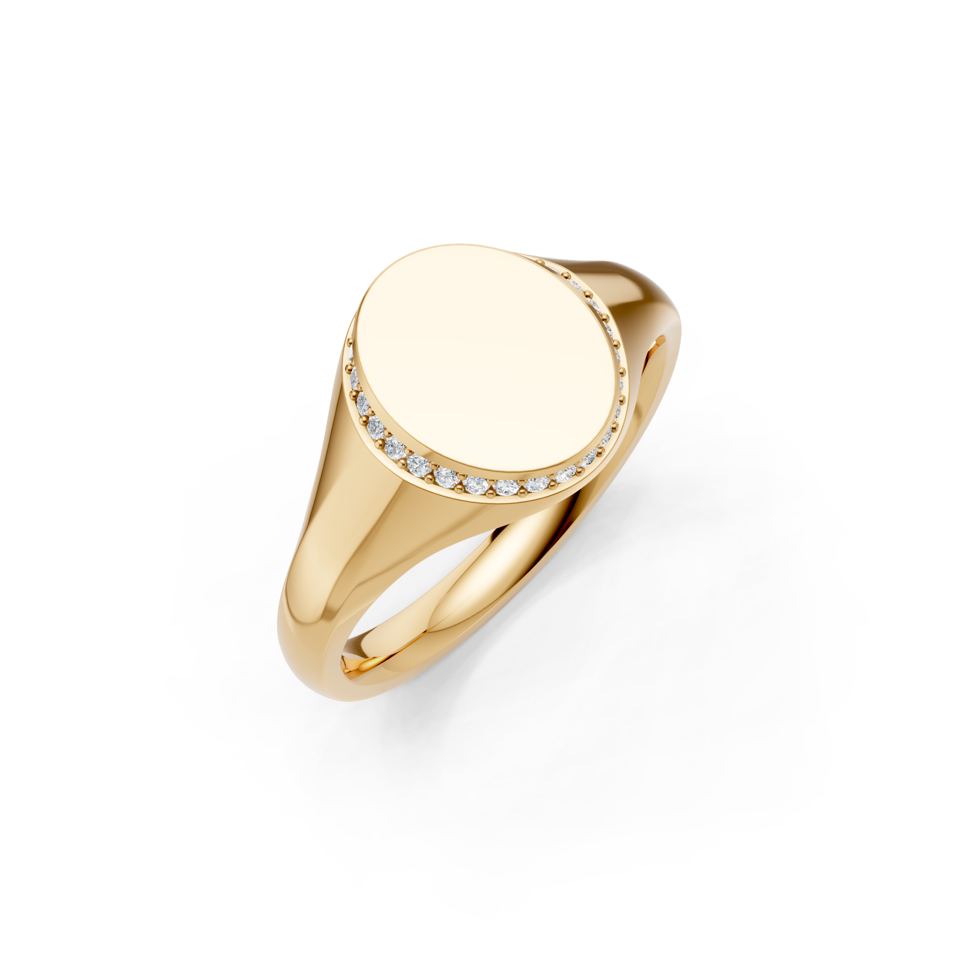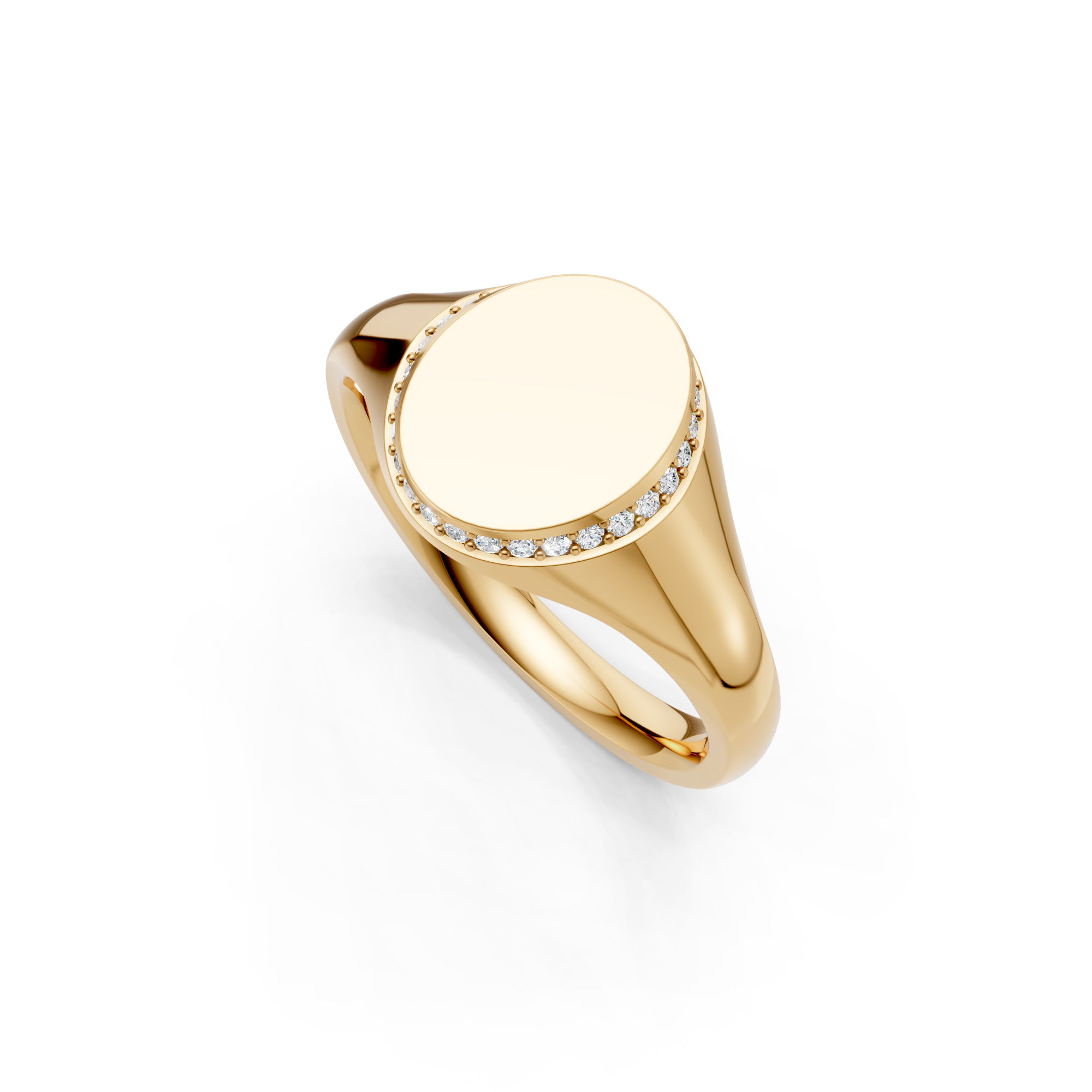 Oval Shaped Diamond Set Bezel Signet Ring. Made to order in England.
